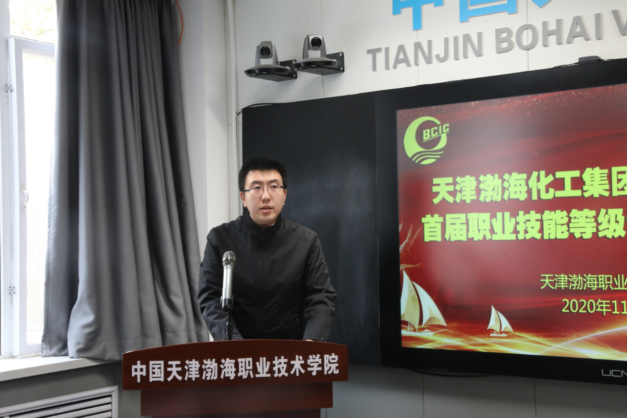 11月6日,天津渤?;ぜ瘓F有限責任公司首屆職業技能等級認定啟動儀式在學院舉行。渤?;ぜ瘓F有限責任公司人力資源部副部長劉洋出席并講話,學院黨委副書記、工會主席李津芳致辭,教務處、繼續教育辦公室主任,圖書館館長吳國旭主持儀式。