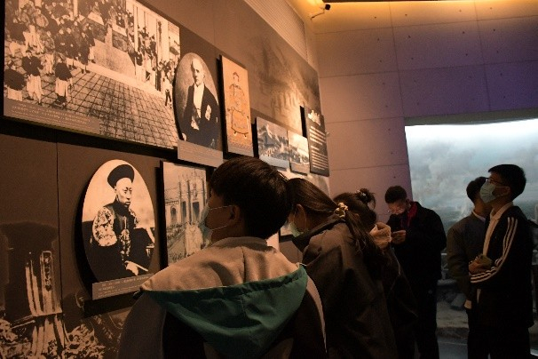 團隊一行到達本次活動的第一站——大沽口炮臺遺址博物館參觀。大沽口炮臺作為第二次鴉片戰爭及八國聯軍入侵中國的重要戰場,是中華民族抗擊外來侵略的歷史見證,現為全國愛國主義教育示范基地。全體同學在此了解了大沽口炮臺歷經外敵入侵、幾經興廢的悲壯歷史,體會了中國人民不畏列強,頑強抗爭的史跡,感受了海河兒女在中國近代史上留下的濃重一筆。