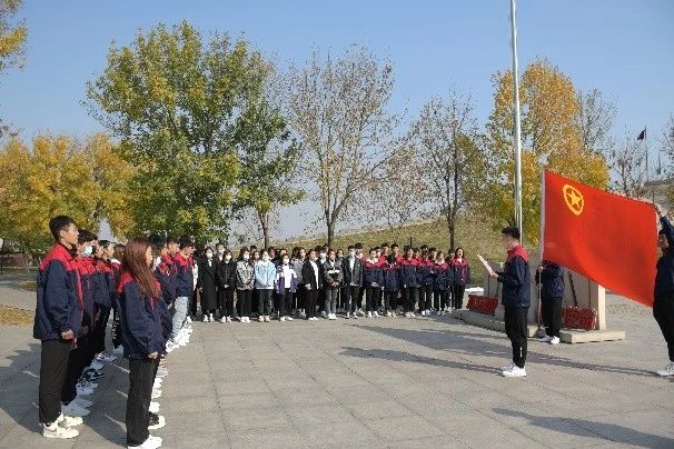 隨后,全體團員青年在“不忘初心、牢記使命”的標語前,面向團旗開展了“學四史 悟真知 踐行動”主題團日活動。來自環化學院的團員代表楊昭金向廣大團員發起了“學四史 悟真知 踐行動”的倡議,倡議廣大團員以史為鑒、不忘初心、知行合一、牢記使命,高舉團旗跟黨走,認真踐行社會主義核心價值觀,為中華民族偉大復興做出當代青年應有的貢獻。最后,學院團委副書記李響帶領全體團員青年重溫了入團誓詞,并對大家提出了踐行青春誓言、傳承"五四"精神、實績回報祖國的具體要求,進一步激發了大家作為共青團員的光榮感和責任感。