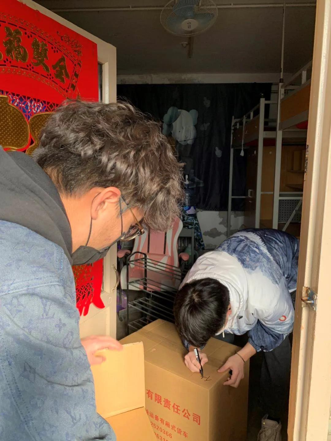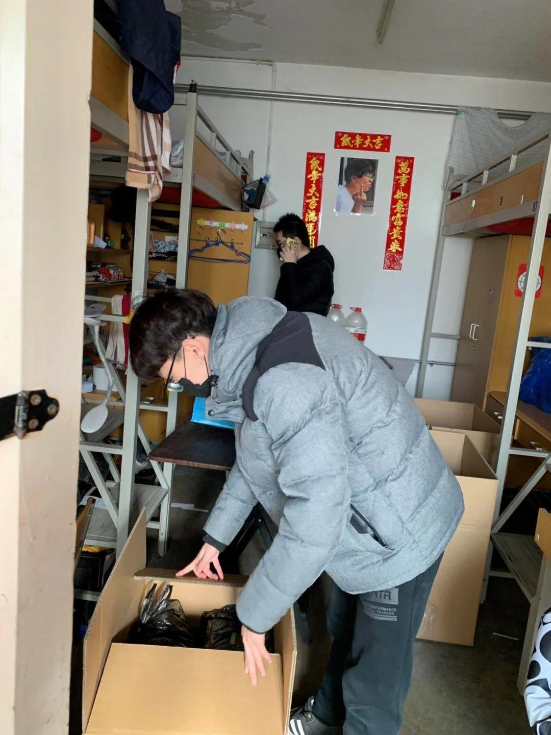 搬家當天,環境與化工學院的中層干部、輔導員以及家在本市的學生志愿者做好個人防護,克服交通困難,準時來到學院進行搬遷工作。環境與化工學院黨支部書記楊慧代表分院對師生們進行了搬遷的最后動員和工作布置。大家紛紛表示,我們全力支持和配合學院的防疫工作,為打贏這場阻擊戰,貢獻出自己的一份力量,隨后大家不怕臟不怕累,將宿舍的生活物品用編織袋分裝、打包、標號,統一搬遷出宿舍樓。