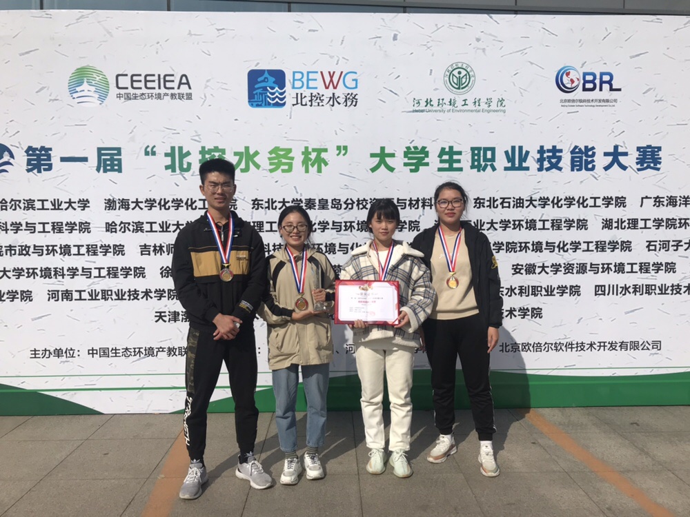 2019年10月25-27日,學(xué)院環(huán)境與化工學(xué)院代表隊(duì)參加了由中國(guó)生態(tài)環(huán)境產(chǎn)教聯(lián)盟主辦,北控水務(wù)集團(tuán)、河北環(huán)境工程學(xué)院承辦的第一屆“北控水務(wù)杯”大學(xué)生職業(yè)技能大賽。本次比賽是學(xué)院首次參加,也是高職本科同臺(tái)競(jìng)技,共有來自全國(guó)各地29所高職本科院校50個(gè)代表隊(duì)200名選手參加,賽項(xiàng)分為虛擬仿真賽和化學(xué)檢驗(yàn)賽兩個(gè)項(xiàng)目。高職本科比賽方案一致,混合比賽。學(xué)院環(huán)境與化工學(xué)院代表隊(duì)選派18級(jí)環(huán)境工程技術(shù)專業(yè)屈蘇夢(mèng)、范瑞雪、李書賢、梁高康4名選手參加了比賽。