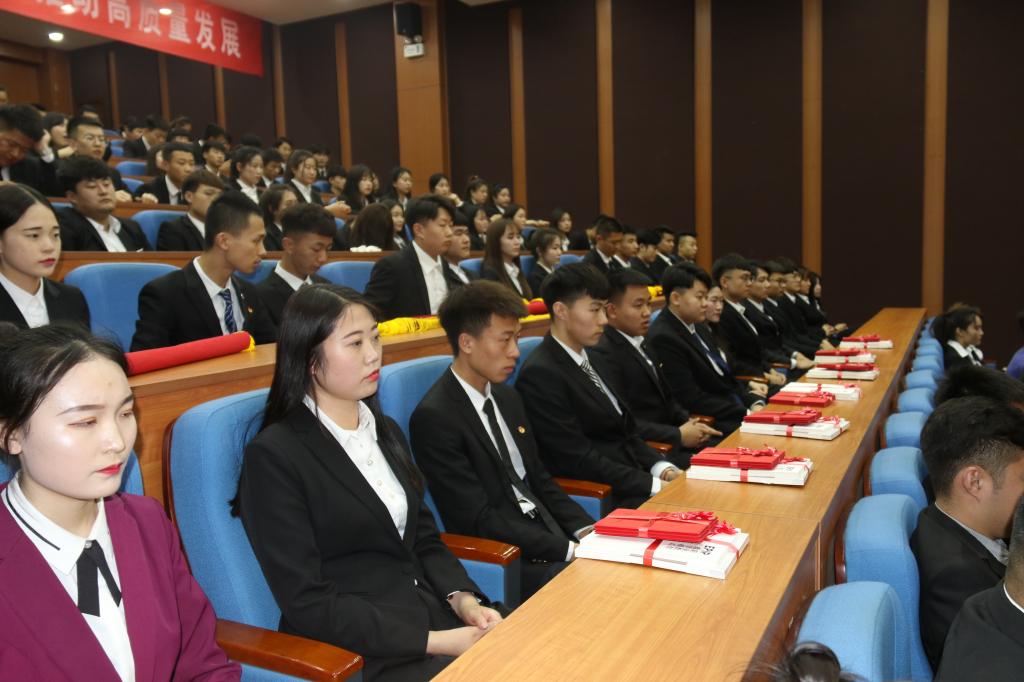 隨后,舉行了隆重的頒獎儀式,學(xué)院領(lǐng)導(dǎo)為受表彰的集體和個(gè)人頒發(fā)了錦旗、證書并贈送書籍《習(xí)近平的七年知青歲月》、《魯班工坊》、《EPIP職業(yè)教育教學(xué)模式:改造我們的學(xué)習(xí)》。兩名學(xué)生分別代表優(yōu)秀團(tuán)干部和紅旗團(tuán)支部做了典型發(fā)言。