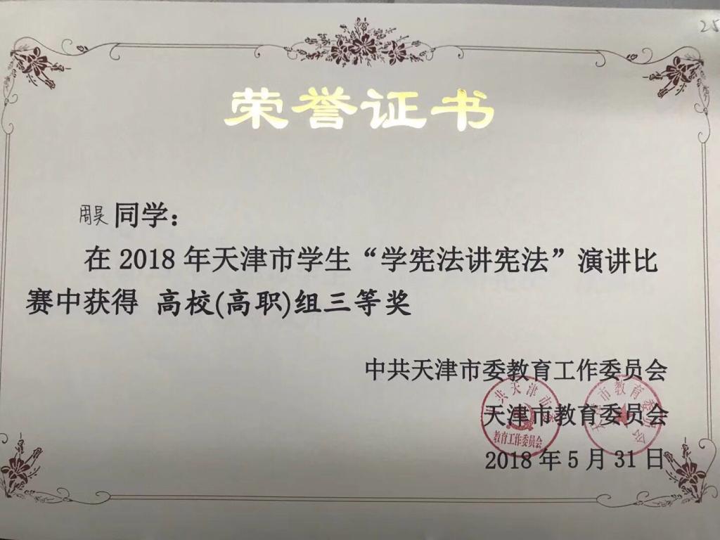 5月31日,2018年天津市學生“學憲法講憲法”主題演講比賽在天津財經大學落下帷幕。財務管理系會計164班周昊同學代表學院參加了本次比賽,榮獲高校組三等獎的優異成績。