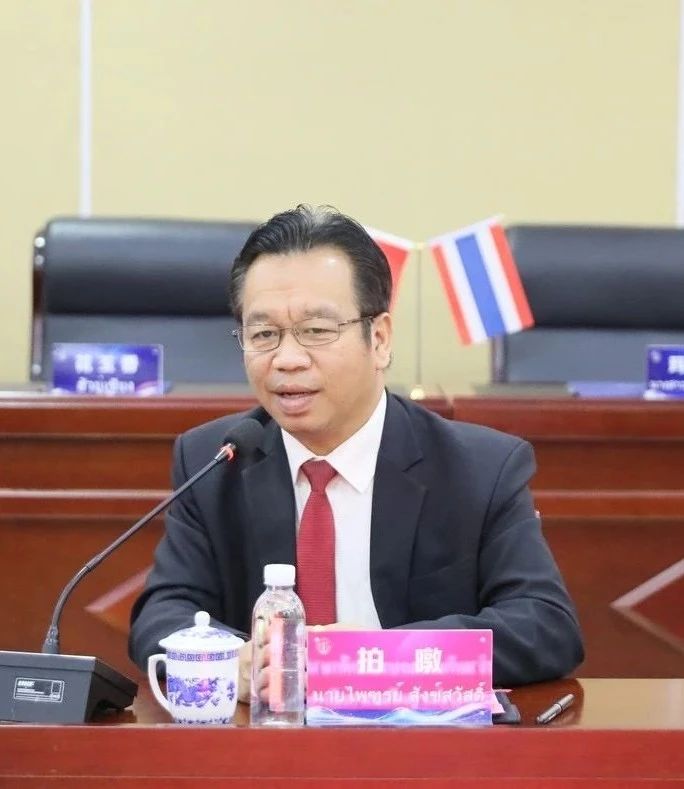 拍暾感謝渤海職院、大城技術(shù)學(xué)院提供良好的合作平臺(tái)。他簡要介紹了紅統(tǒng)技術(shù)學(xué)院的辦學(xué)情況,并表示泰國魯班工坊是中泰職業(yè)院校對(duì)外合作的典范,期待與兩所院校在人才培養(yǎng)等方面進(jìn)行深入探索與務(wù)實(shí)合作。此外,他還談到,本次到訪使他切身感受到學(xué)院優(yōu)良的辦學(xué)條件,希望能為渤海職院做更多宣傳,讓更多泰國學(xué)生來渤海學(xué)習(xí)。