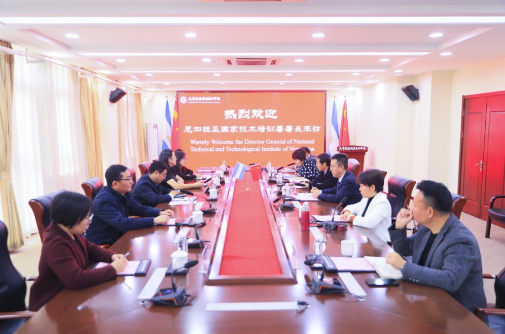 11月20日,尼加拉瓜國家技術培訓署署長羅伊達·巴萊達到訪學院,并就尼加拉瓜魯班工坊建設工作開展交流,尼加拉瓜大使秘書劉玉潔、天津職業技術師范大學副校長蔡玉俊等一行陪同。渤化集團副總經理張寶春、學院黨委書記魏炳舉出席會議,學院黨委副書記、工會主席、副院長王蕾主持。