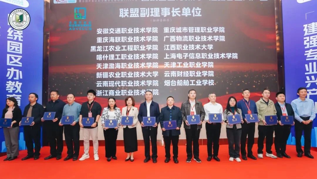 本次會議以“圍繞園區辦教育,建強專業興產業”為主題,聚焦于如何推動產業園區與職業院校深度融合,從而辦好職業教育。會議吸引了來自全國各地的職業院校領導、企業代表及教育專家共200多人,共同探討市域產教聯合發展路徑,并進行經驗分享。會上,全國開發區職業教育發展聯盟授予我校第一屆副理事長單位,花玉香擔任第一屆理事會副理事長。