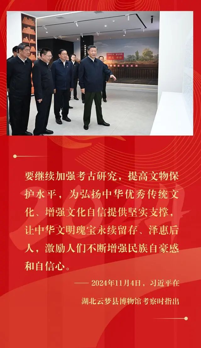 中國式現代化賦予中華文明以現代力量,中華文明賦予中國式現代化以深厚底蘊。2024年,習近平總書記在基層考察期間,多次來到古街巷、博物館、文化遺址等地調研,對傳承弘揚中華優秀傳統文化、賡續中華文脈、發揚革命傳統和鑄牢中華民族共同體意識等工作作出重要指示,為新時代新征程建設社會主義文化強國指明方向。
