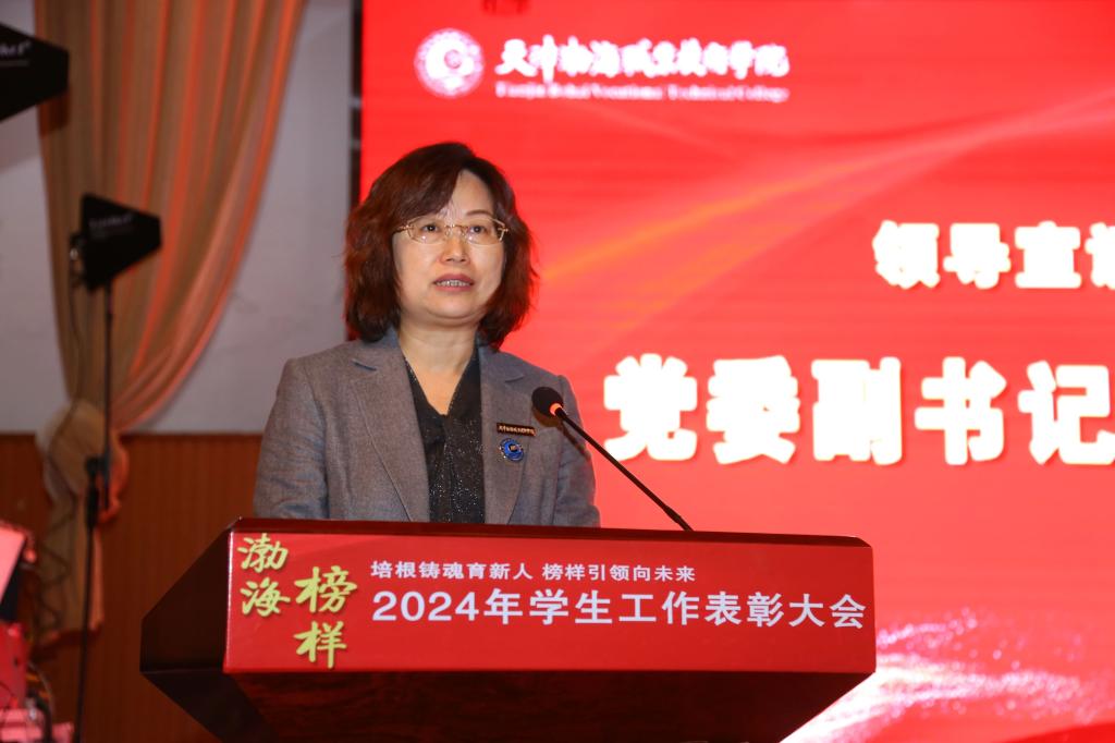 12月19日,學校在學生活動中心召開2024年學生工作表彰大會。學校黨委書記魏炳舉,黨委副書記、院長花玉香,黨委副書記、工會主席、副院長王蕾,紀委書記王雷出席表彰大會并為受表彰的先進集體和個人頒獎。學校相關職能部門主要負責人、各二級學院全體中層干部、全體輔導員、優秀學生代表共計600余人參加了表彰大會。