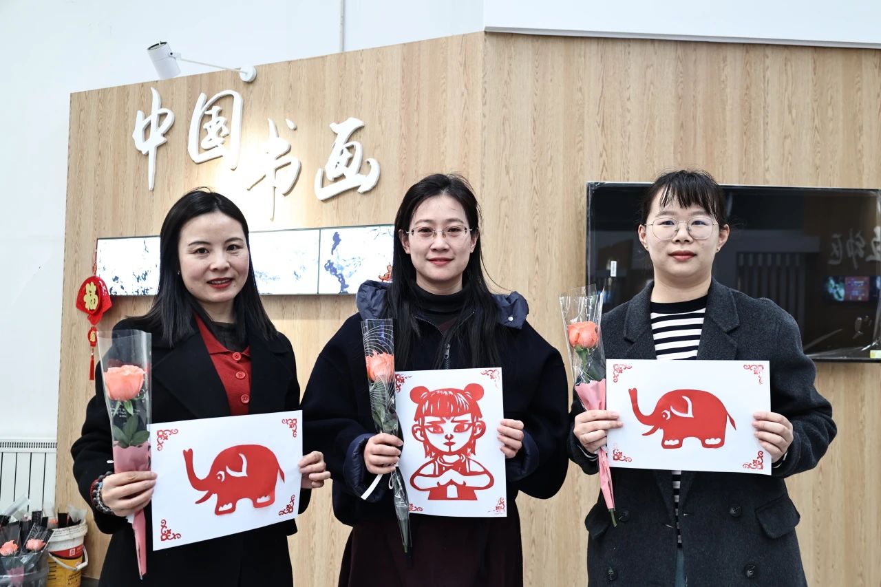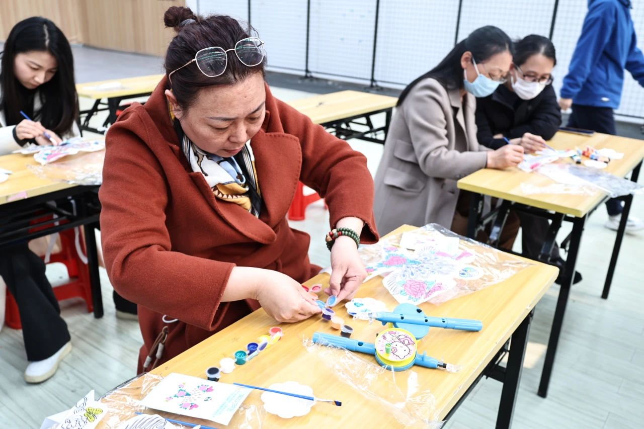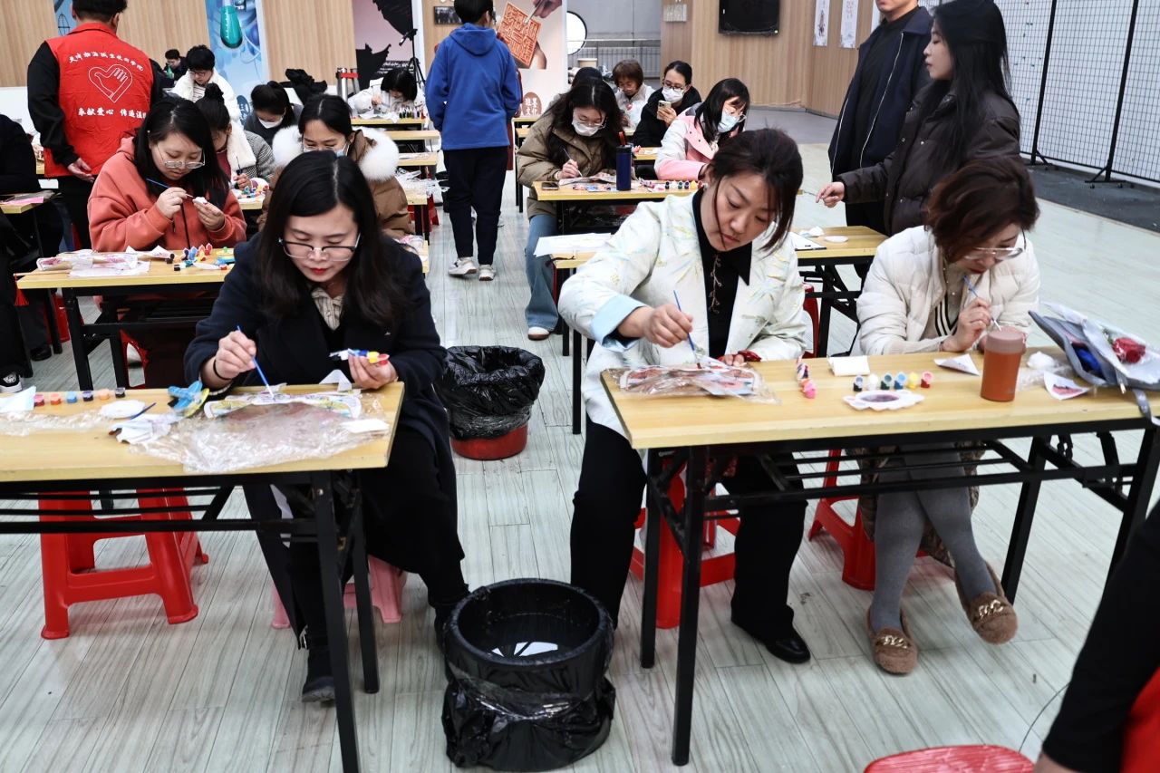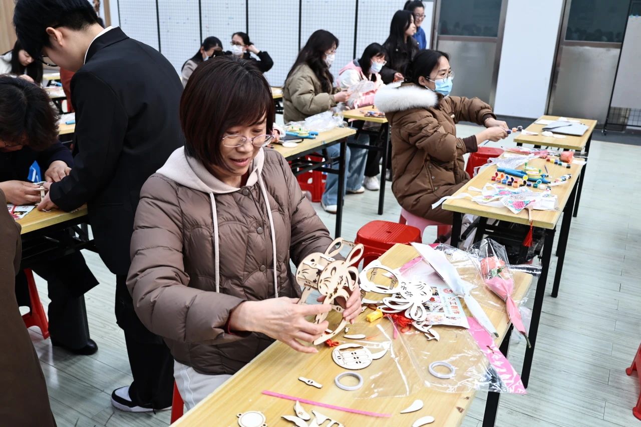 現場循環播放學院女教職工風采宣傳片,鏡頭中展現了她們在講臺耕耘、科研創新、管理服務中的颯爽英姿,引發了全場共鳴。本次“巧手綻芳華?幸運女神節”主題活動分成兩個部分,創意手工和幸運轉盤,在創意手工部分,學院特別邀請了4位能工巧匠給手工項目做指導,何重璽老師帶領大家剪紙、張春來老師和李鐵功老師作為書法指導、何怡老師作為繪畫指導,帶領大家體驗五大主題手作。