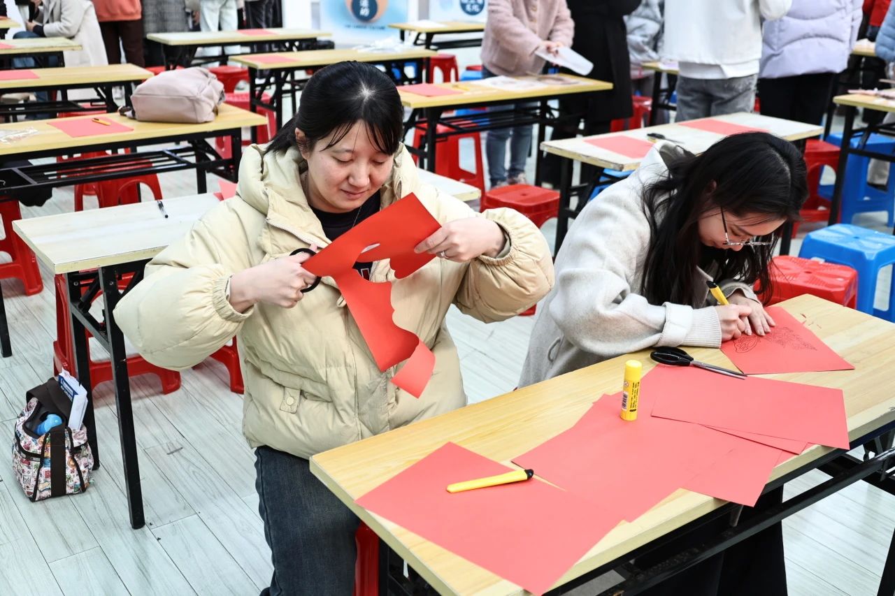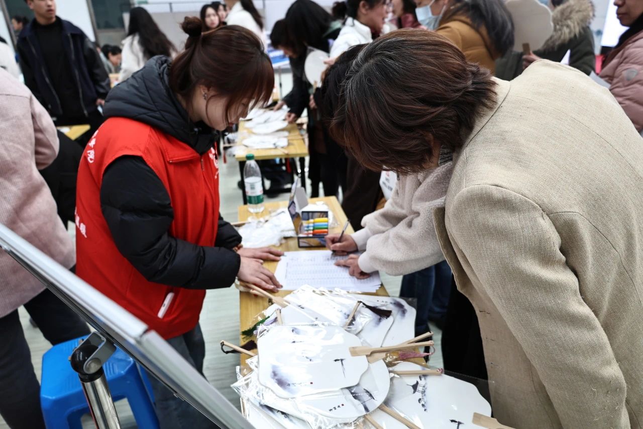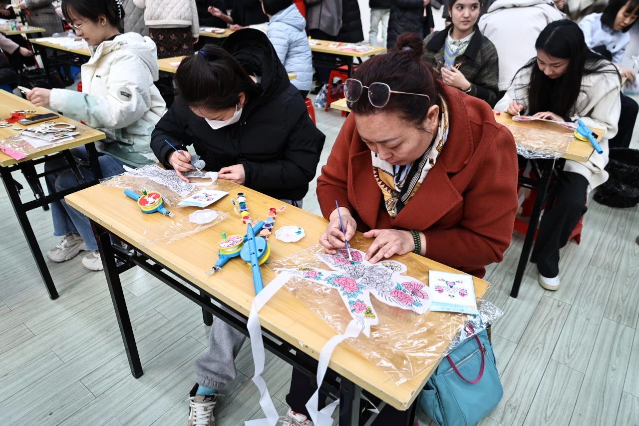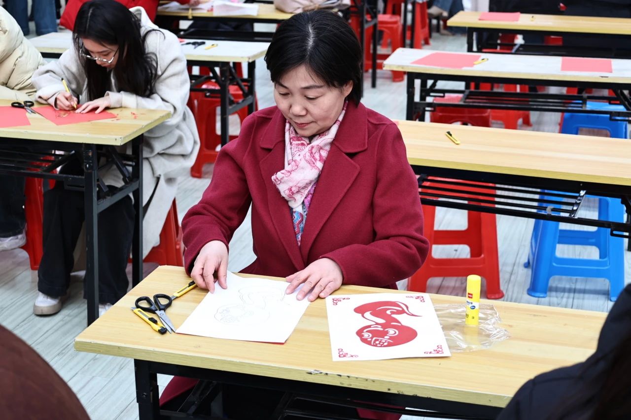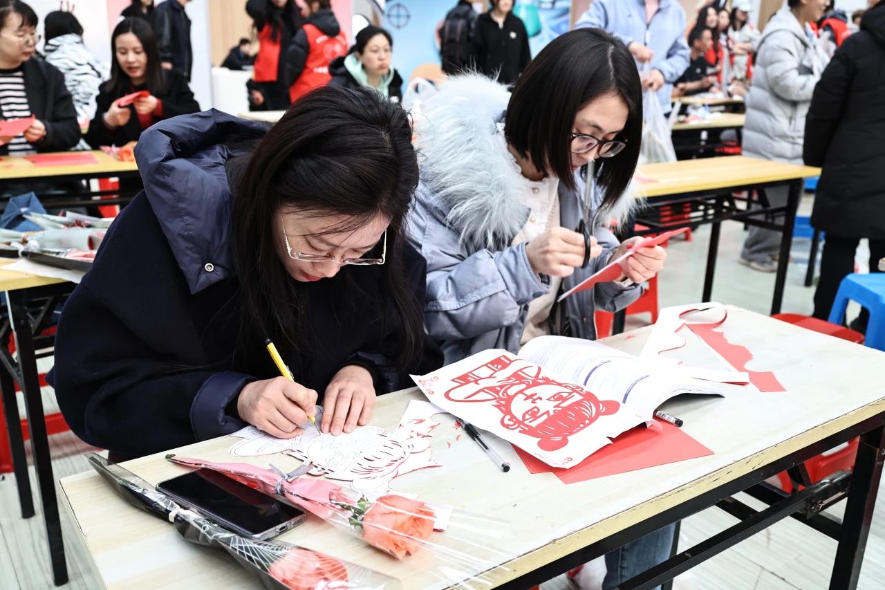 現場循環播放學院女教職工風采宣傳片,鏡頭中展現了她們在講臺耕耘、科研創新、管理服務中的颯爽英姿,引發了全場共鳴。本次“巧手綻芳華?幸運女神節”主題活動分成兩個部分,創意手工和幸運轉盤,在創意手工部分,學院特別邀請了4位能工巧匠給手工項目做指導,何重璽老師帶領大家剪紙、張春來老師和李鐵功老師作為書法指導、何怡老師作為繪畫指導,帶領大家體驗五大主題手作。
