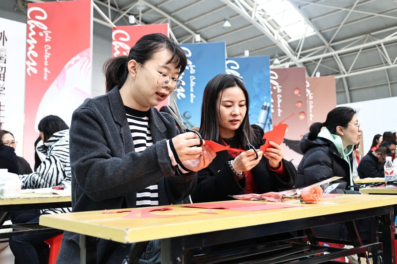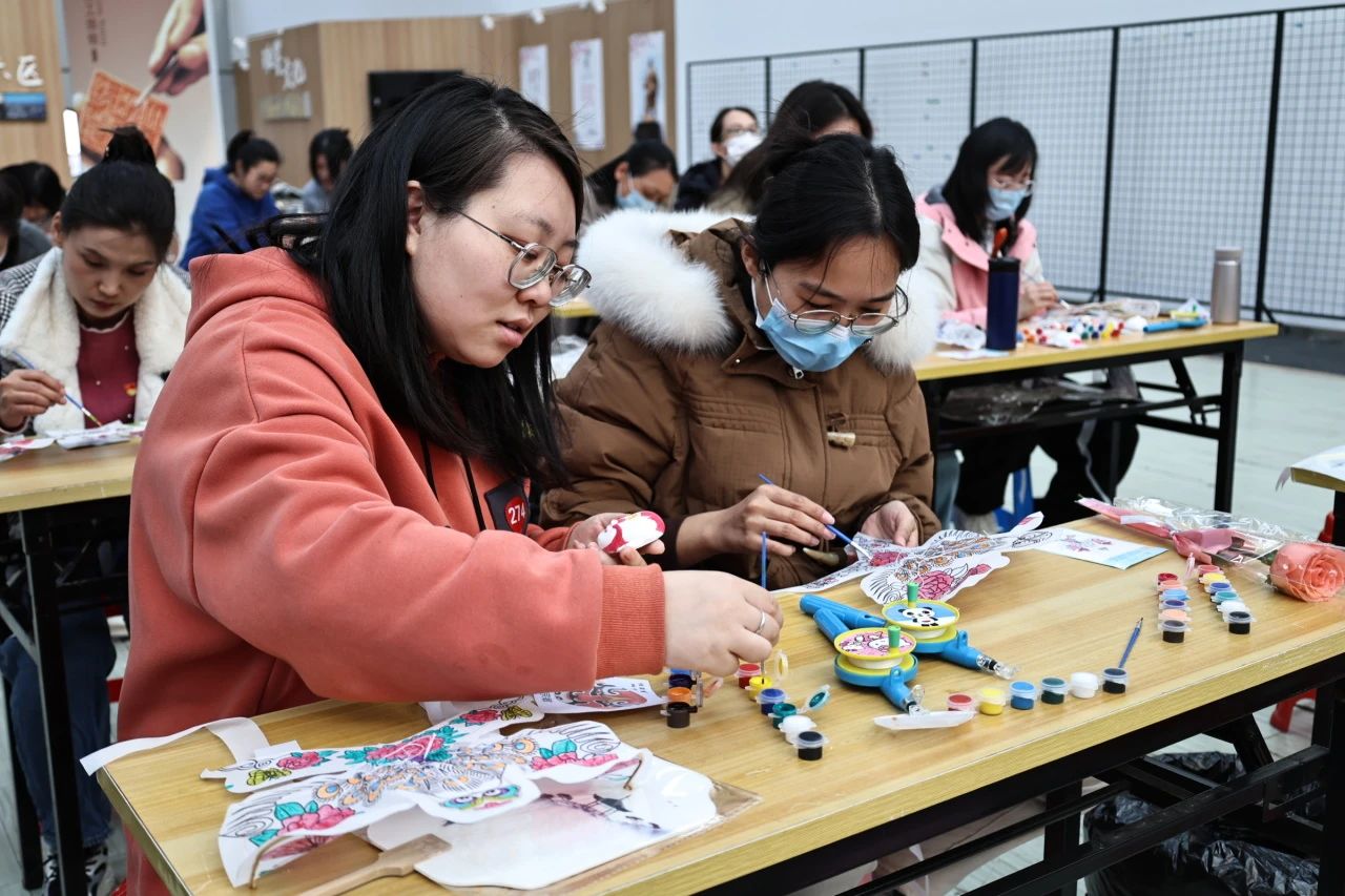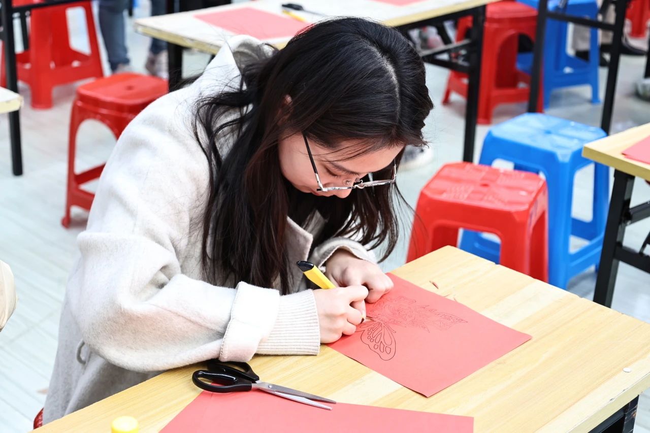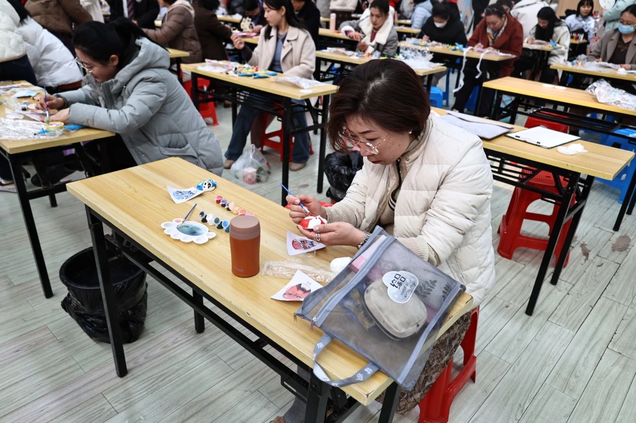 現場循環播放學院女教職工風采宣傳片,鏡頭中展現了她們在講臺耕耘、科研創新、管理服務中的颯爽英姿,引發了全場共鳴。本次“巧手綻芳華?幸運女神節”主題活動分成兩個部分,創意手工和幸運轉盤,在創意手工部分,學院特別邀請了4位能工巧匠給手工項目做指導,何重璽老師帶領大家剪紙、張春來老師和李鐵功老師作為書法指導、何怡老師作為繪畫指導,帶領大家體驗五大主題手作。