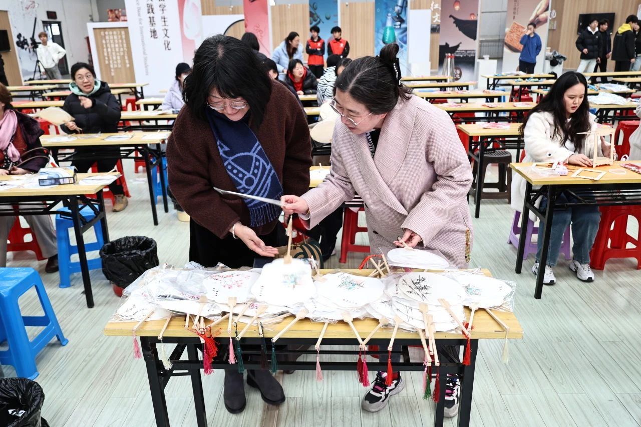非遺剪紙手工讓哪吒與校吉祥物的靈動躍然紙上,以“渤海藍”為底的多彩臉譜,繪出京劇神韻與渤海情懷,花繪燈籠將詩詞光影與校園植物相融,點亮詩意浪漫,古法漆扇以校園四季入畫,傳承千年匠心,風箏彩繪讓校訓乘著沙燕風箏翱翔藍天。