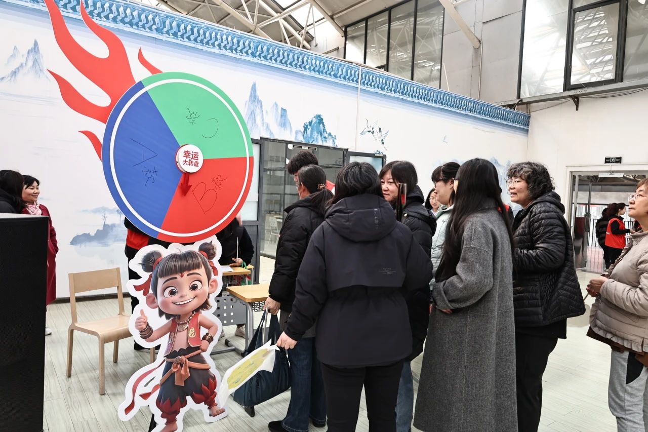 活動特別設計了“幸運轉盤”趣味互動環節。轉盤上設置了多款驚喜獎品。每位參與者均可轉動轉盤一次,收獲學院準備的專屬節日祝福。隨著轉盤的飛速旋轉,歡呼聲此起彼伏,現場氣氛熱烈歡騰。