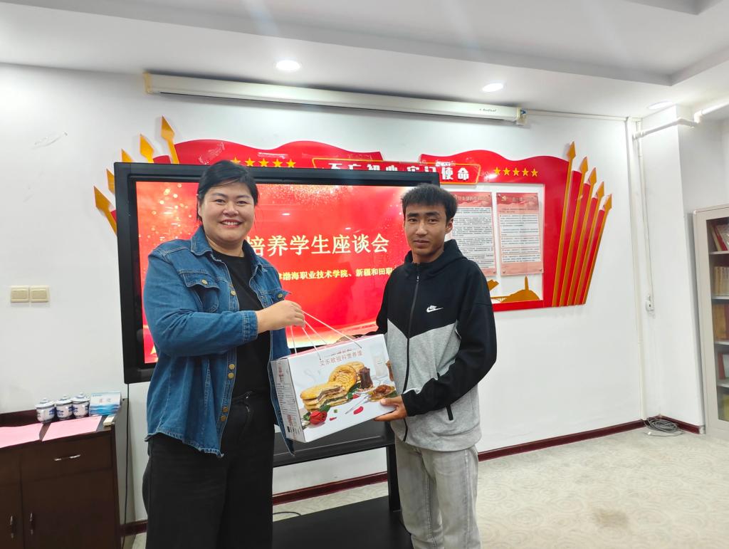 座談會(huì)環(huán)節(jié),王蕾?gòu)?qiáng)調(diào)了兩校聯(lián)合培養(yǎng)工作的重要意義,希望今后繼續(xù)加強(qiáng)交流,深化兩校在人才培養(yǎng)、教育資源共享等領(lǐng)域的合作。耿鐵軍鼓勵(lì)聯(lián)合培養(yǎng)班的同學(xué)們?cè)谛碌膶W(xué)習(xí)環(huán)境中勤奮學(xué)習(xí)、開拓視野,努力成長(zhǎng)為兩地友誼與合作的橋梁。楊永娟也指出,兩校通過(guò)深度合作,為學(xué)生搭建了寶貴的學(xué)習(xí)平臺(tái),使他們能夠接觸到行業(yè)前沿技術(shù),增強(qiáng)就業(yè)競(jìng)爭(zhēng)力。她勉勵(lì)同學(xué)們珍惜學(xué)習(xí)機(jī)會(huì),將理論知識(shí)與工程實(shí)踐緊密結(jié)合,努力成長(zhǎng)為滿足社會(huì)需求的高素質(zhì)技術(shù)技能人才。聯(lián)培班班主任麥麥提圖爾蓀及和田職院聯(lián)合培養(yǎng)班18名學(xué)生代表,分別分享了自己在渤海職院的學(xué)習(xí)經(jīng)歷和成長(zhǎng)收獲,他們表示,通過(guò)聯(lián)合培養(yǎng)項(xiàng)目,不僅學(xué)到了專業(yè)知識(shí)和實(shí)踐技能,還開闊了眼界,增強(qiáng)了自信心和競(jìng)爭(zhēng)力。緊接著,耿鐵軍與學(xué)生們親切交談,認(rèn)真傾聽他們?cè)趯W(xué)習(xí)生活中的感受與需求,現(xiàn)場(chǎng)氛圍溫馨而熱烈。