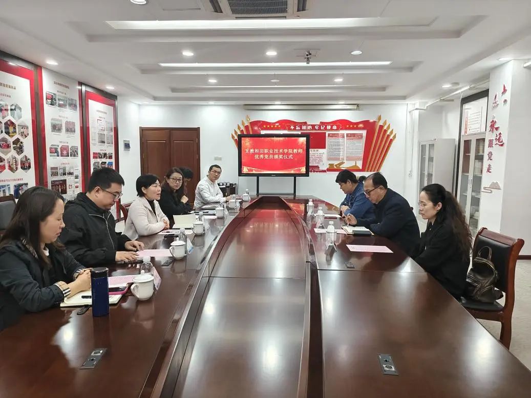 頒獎(jiǎng)儀式環(huán)節(jié),魏炳舉和耿鐵軍共同為曹衛(wèi)忠頒發(fā)了“優(yōu)秀黨員”證書,以表彰他在支教期間展現(xiàn)出的卓越品質(zhì)和無(wú)私奉獻(xiàn)精神。王蕾對(duì)和田職院領(lǐng)導(dǎo)及教師的到來(lái)表示熱烈歡迎,強(qiáng)調(diào)了以曹衛(wèi)忠為代表的黨員教師在支教工作中發(fā)揮的重要作用。耿鐵軍高度評(píng)價(jià)了兩校在聯(lián)合培養(yǎng)工作中取得的成果,并對(duì)學(xué)院的支持和幫助表示衷心感謝。曹衛(wèi)忠跟大家分享了自己的支教經(jīng)歷和感悟,表達(dá)了對(duì)教育事業(yè)的熱愛(ài)和對(duì)兩校合作的期待。