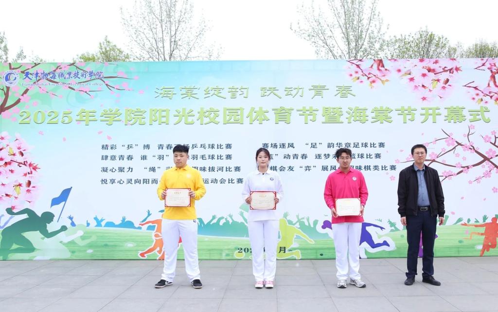 春風拂面,海棠競放。4月11日,伴隨著激昂的《渤海之歌》與師生的熱烈歡呼,以“海棠綻韻 躍動青春”為主題的陽光校園體育節暨海棠節開幕式在學院文化廣場開幕。學院黨委書記魏炳舉,黨委副書記、院長花玉香,黨委副書記、工會主席、副院長王蕾,紀委書記王雷出席開幕式。各相關職能部門、二級學院中層干部、師生代表共同參加。