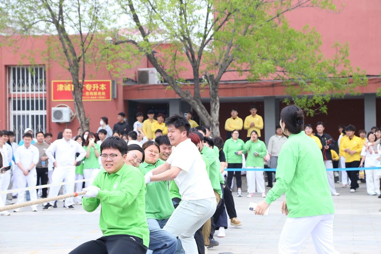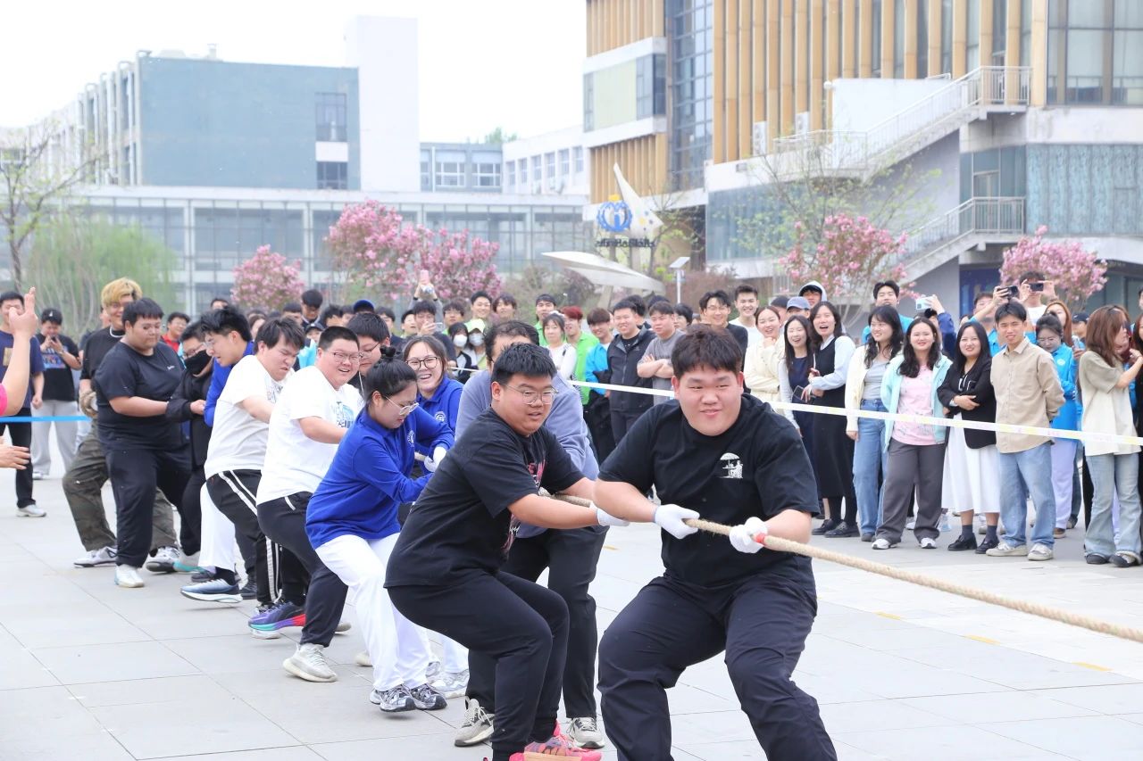 作為開幕首場競技,由機電工程學院承辦的“凝心聚力 ‘繩’彩飛揚”趣味拔河比賽點燃全場激情。各二級學院組成的7支隊伍展開激烈角逐,選手們緊握長繩、重心后傾,吶喊聲震耳欲聾,長繩中點的紅綢在界線上來回拉鋸。最終,信息工程學院獲得一等獎,機電工程學院獲得二等獎,工商管理學院、人工智能學院獲得三等獎,環境與化工學院、經濟管理學院、工程管理學院獲得優勝獎。