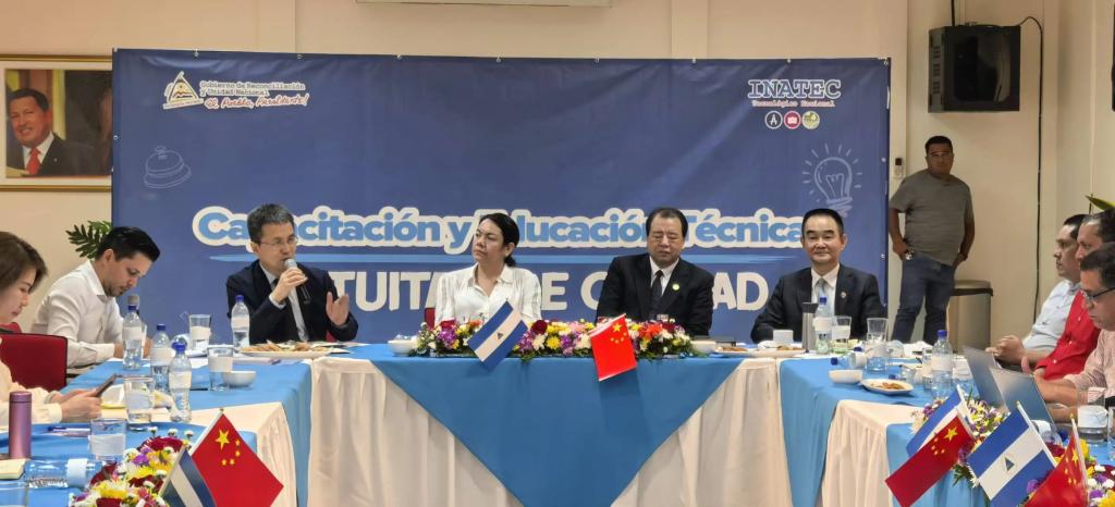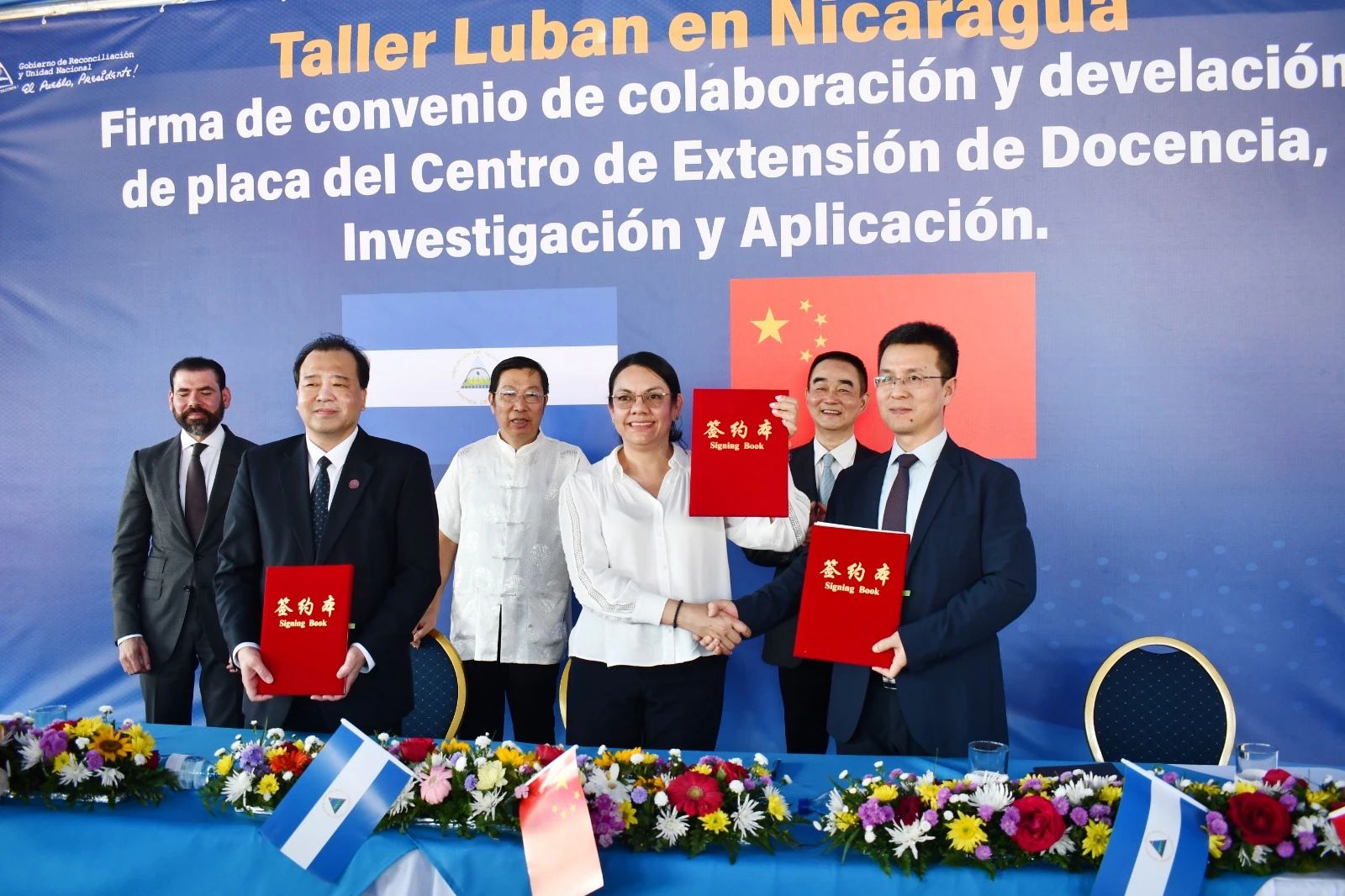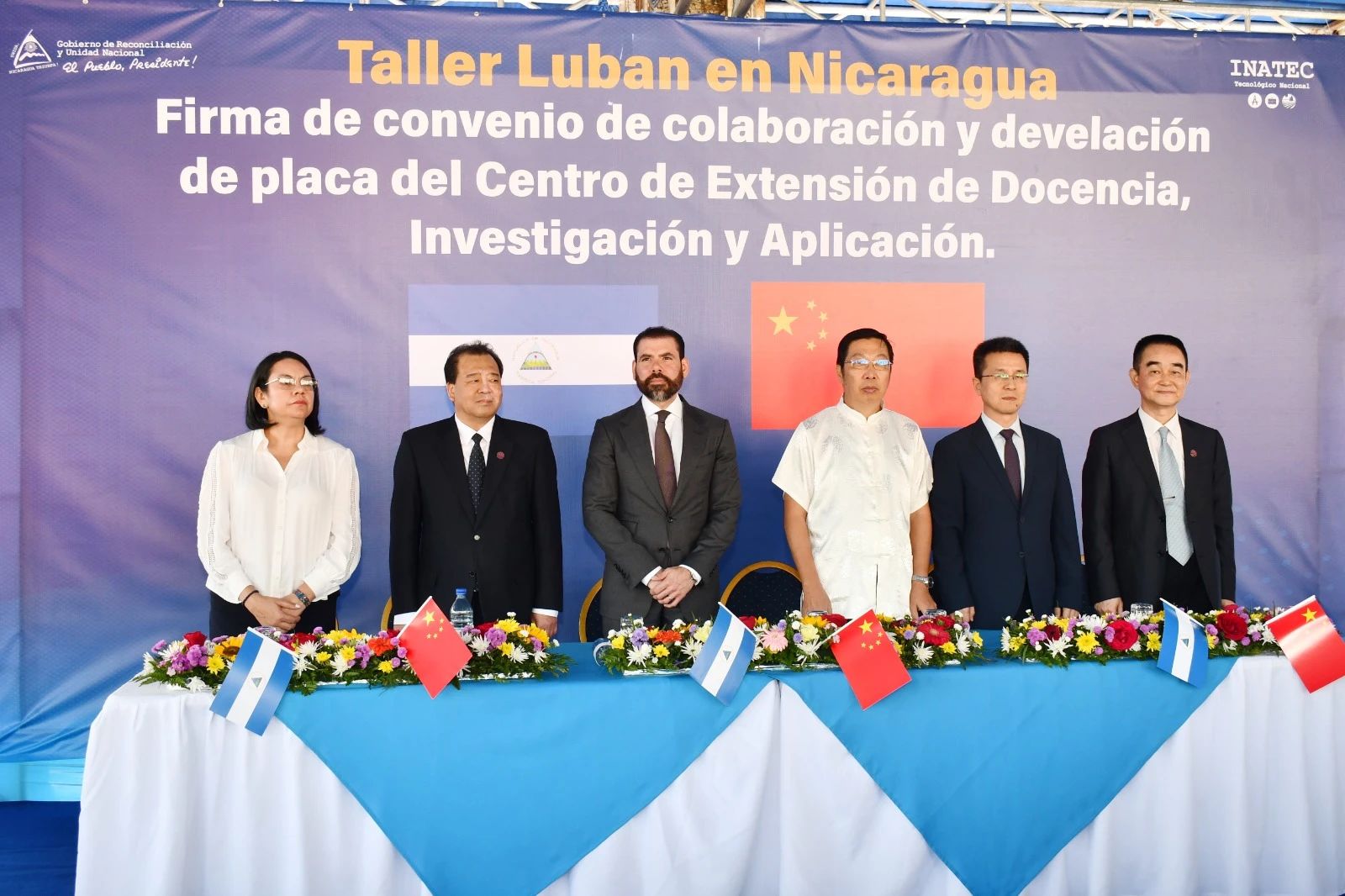 應尼加拉瓜國家技術培訓署邀請,在教育部、國家國際發展合作署、天津市教育兩委和天津市外辦、中國駐尼加拉瓜大使館大力支持指導下,當地時間3月26日至28日,由世界職業技術教育發展聯盟副主席、天津職業技術師范大學黨委書記張金剛,教育部魯班工坊建設專家委員會主任、天津職業技術師范大學原副校長、工程實踐創新項目(EPIP)研推中心主任呂景泉,天津渤海職業技術學院黨委書記魏炳舉率領的魯班工坊工作團組,到訪尼加拉瓜國家技術培訓署、法布雷托職業學校(技術中心)并開展現場工作,工作團組受到尼加拉瓜總統顧問勞雷亞諾·奧爾特加、國家技術培訓署署長羅伊達·巴萊達和當地職業院校師生的熱烈歡迎和熱情接待。在勞雷亞諾·奧爾特加和中國駐尼加拉瓜大使陳曦見證下,三方簽署《中國天津職業技術師范大學、天津渤海職業技術學院與尼加拉瓜國家技術培訓署建設運營魯班工坊合作協議》,標志著美洲第一個魯班工坊正式落地。尼加拉瓜聯合總統羅薩里奧·穆里略在全國廣播講話中對魯班工坊建設給予高度評價。