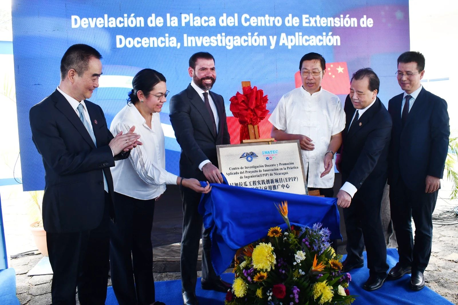 當地時間3月26日上午,尼加拉瓜魯班工坊建設與運營合作協議簽字儀式暨尼加拉瓜工程實踐創新項目(EPIP)教學研究與拓展應用中心揭牌儀式舉行,勞雷亞諾·奧爾特加、陳曦、羅伊達·巴萊達、張金剛、呂景泉、魏炳舉出席儀式并致辭,300余名當地職業院校師生參加儀式。《協議》簽署后,勞雷亞諾·奧爾特加、陳曦、羅伊達·巴萊達、張金剛、呂景泉、魏炳舉共同為“尼加拉瓜工程實踐創新項目(EPIP)教學研究與應用拓展中心”揭牌。呂景泉代表中方向尼加拉瓜魯班工坊贈送魯班工坊與EPIP中外文系列專著和中英文教材資源,中尼雙方就加快推進EPIP模式體系、標準體系和資源體系的西班牙語翻譯、出版工作達成高度共識。