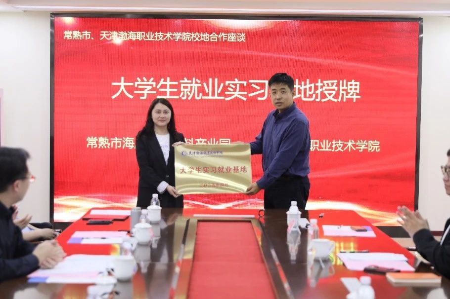 會上,雙方舉行了校地合作簽約儀式,并為常熟市海虞鎮新材料產業園“大學生實習就業基地”進行授牌。