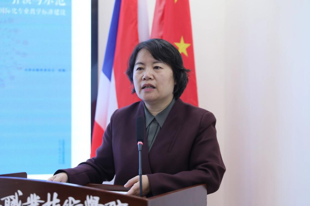 楊延作了題為《魯班工坊國際品牌建設與EPIP全球推廣》主旨報告。她系統回顧了魯班工坊建設歷程與發展成果,重點介紹了該項目在職教體系建設、產教融合發展等方面的創新舉措以及EPIP教學模式的推廣實踐,特別對泰國魯班工坊的建設成就給予了充分肯定。楊延表示,魯班工坊研究與推廣中心將持續支持泰國魯班工坊建設,希望泰國魯班工坊發揮好“技術驛站”作用,實現新突破。