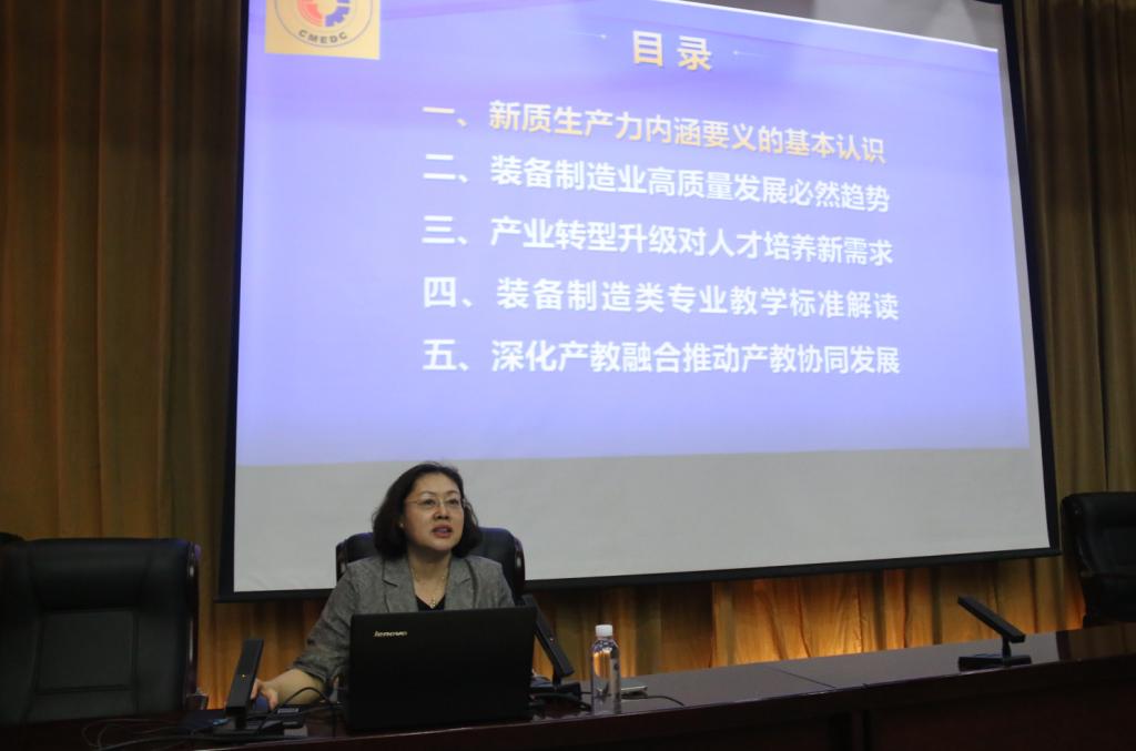 鄭麗梅深耕職業(yè)教育領(lǐng)域多年,在教學(xué)標(biāo)準(zhǔn)建設(shè)、行業(yè)人才規(guī)劃、技能競(jìng)賽組織及教學(xué)資源開發(fā)等方面成果豐碩,理論積淀深厚,實(shí)踐經(jīng)驗(yàn)豐富。講座中,她圍繞新質(zhì)生產(chǎn)力的核心內(nèi)涵,結(jié)合裝備制造業(yè)高質(zhì)量發(fā)展趨勢(shì),深入剖析產(chǎn)業(yè)轉(zhuǎn)型升級(jí)背景下的人才需求變化。同時(shí),對(duì)裝備制造類專業(yè)教學(xué)標(biāo)準(zhǔn)進(jìn)行專業(yè)解讀,并從多個(gè)維度探討深化產(chǎn)教融合、推動(dòng)產(chǎn)教協(xié)同發(fā)展的創(chuàng)新路徑,為與會(huì)教師帶來一場(chǎng)兼具理論高度與實(shí)踐深度的知識(shí)盛宴。