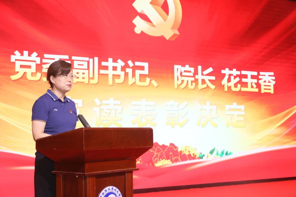 會上,花玉香宣讀了《關于表彰優秀共產黨員、優秀黨務工作者、先進基層黨組織和“創最佳黨日”優秀活動黨組織的決定》。學院領導依次為受表彰的先進基層黨組織、優秀黨務工作者和優秀共產黨員代表頒授錦旗和榮譽證書。