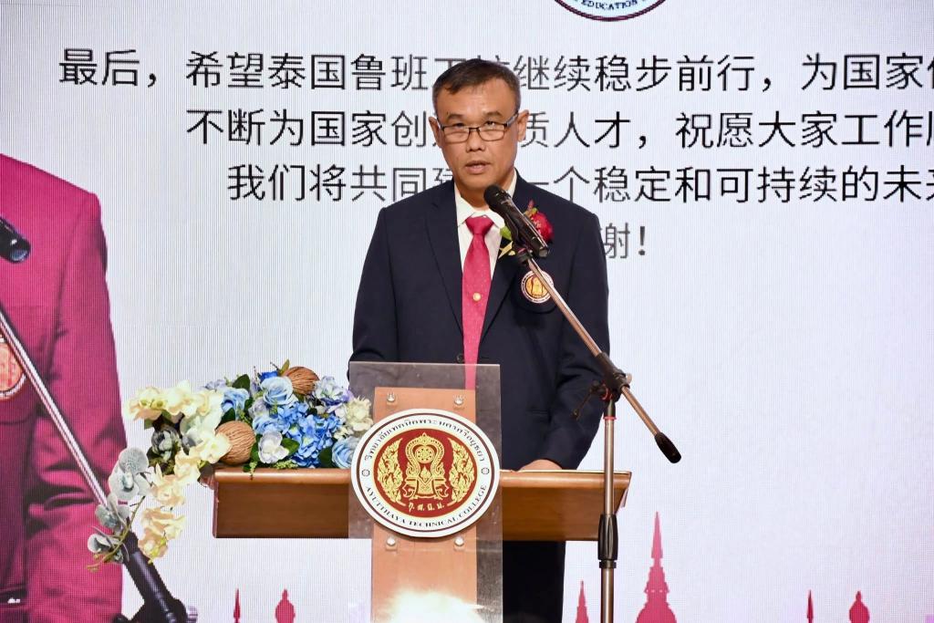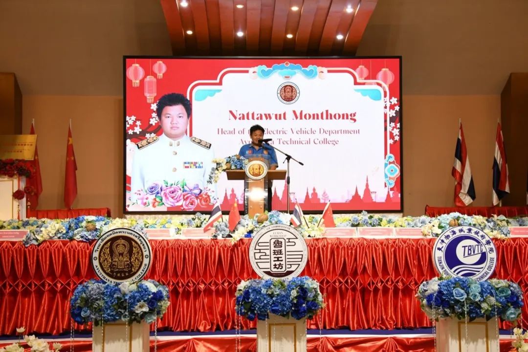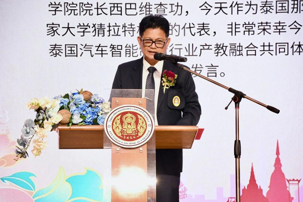 西巴維查功院長作為泰國那空沙旺皇家大學校長猜拉特先生的代表在致辭中表示,值此我校建校103周年之際,我們將以共同體為平臺,精準對接智能制造與汽車產業(yè)需求,深化產教融合實踐,攜手培育符合未來勞動力市場的高素質技術人才,助力中泰職教合作邁向新高度!