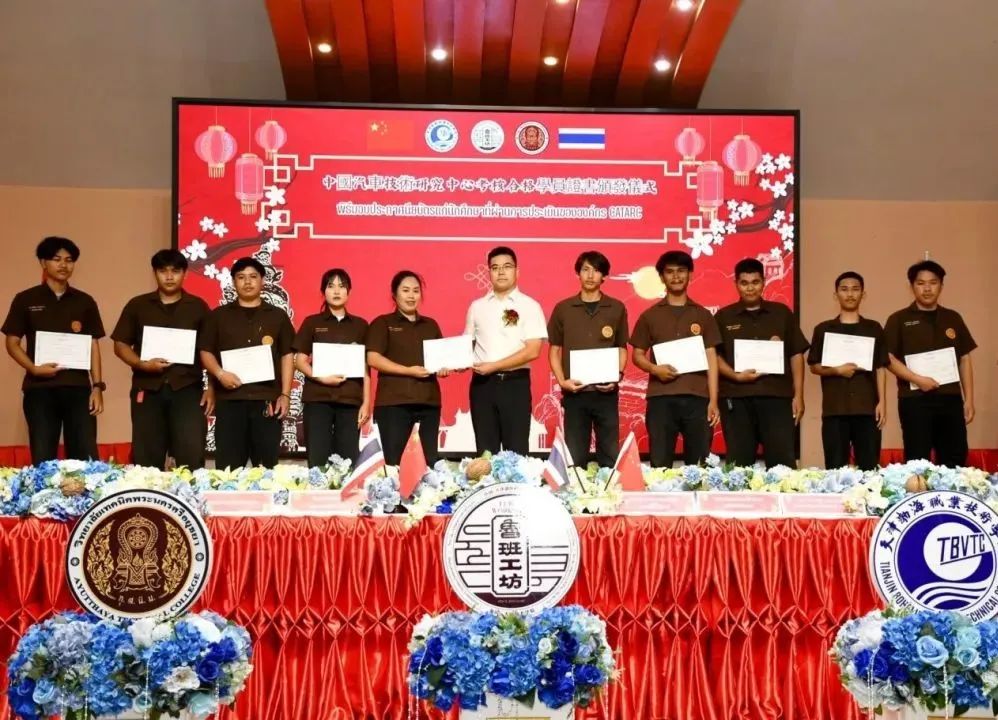“智車學堂”旨在服務中資車企全球化戰(zhàn)略,搭建產教融合平臺。2024年9月天津渤海職業(yè)技術學院與中汽研汽車科技(上海)有限公司等項目發(fā)起方簽訂了項目合作協(xié)議。此次中方代表向泰國大城技術學院授予“學習中心”“考試中心”,向那空沙旺皇家大學、紅統(tǒng)技術學院分別授予“學習中心”,標志著“智車學堂”品牌項目正式落地泰國,開啟了中泰聯(lián)合培養(yǎng)汽車智能制造領域技術技能人才的新階段。