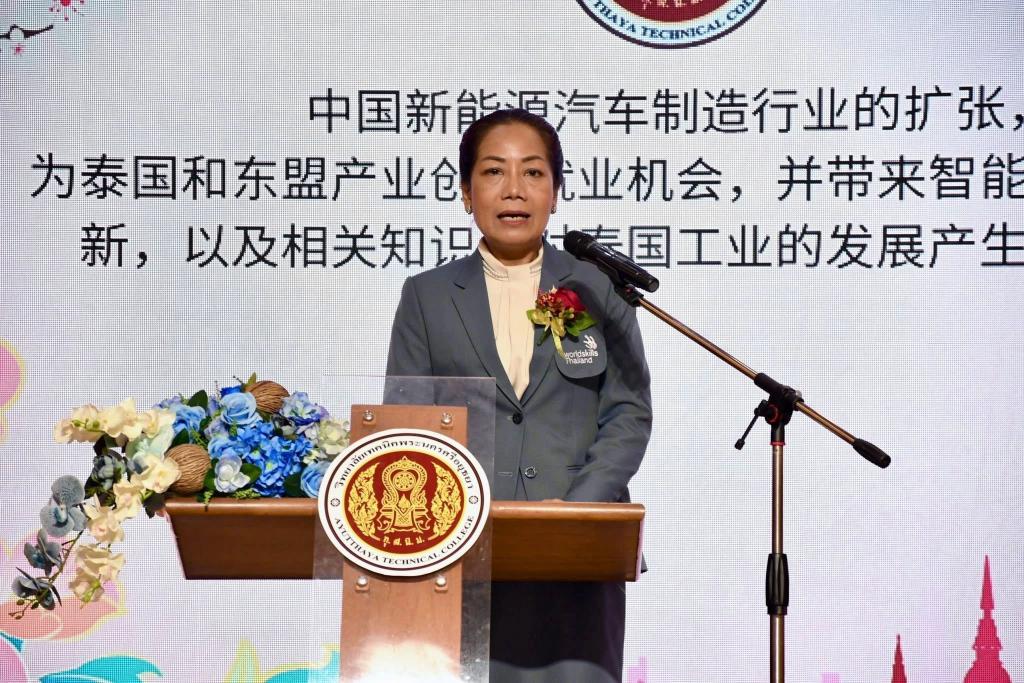 瑪悠麗院長在致辭中強調作為“一帶一路”倡議的堅定伙伴,從全球首個魯班工坊落地泰國,到今日共同體的成立,職業(yè)教育始終是兩國協(xié)同發(fā)展的橋梁。中國新能源汽車產業(yè)將為泰國及東盟創(chuàng)造高質量的就業(yè)機遇,共同體的成立將加速產教資源融合,為區(qū)域發(fā)展注入可持續(xù)動能。