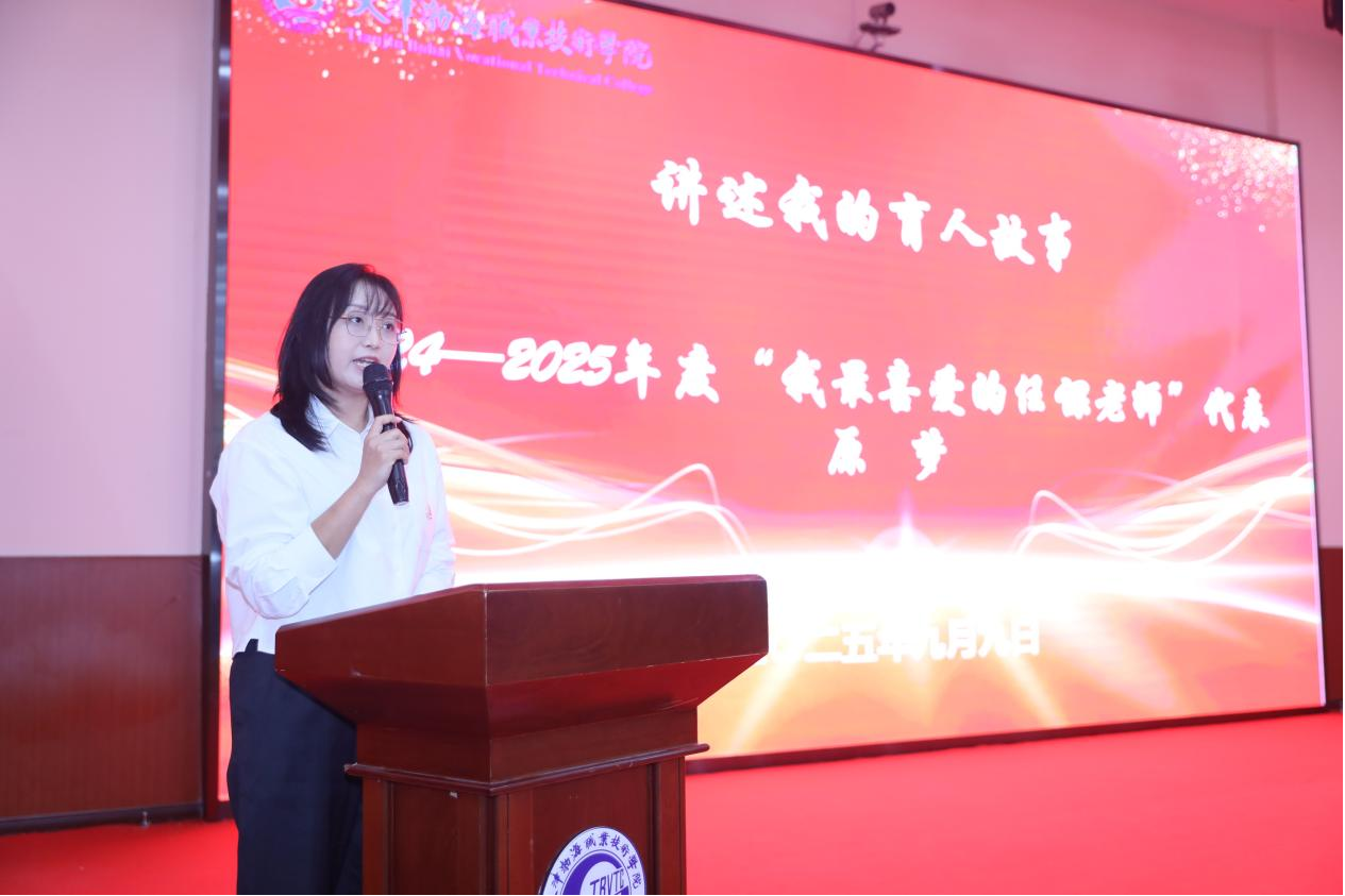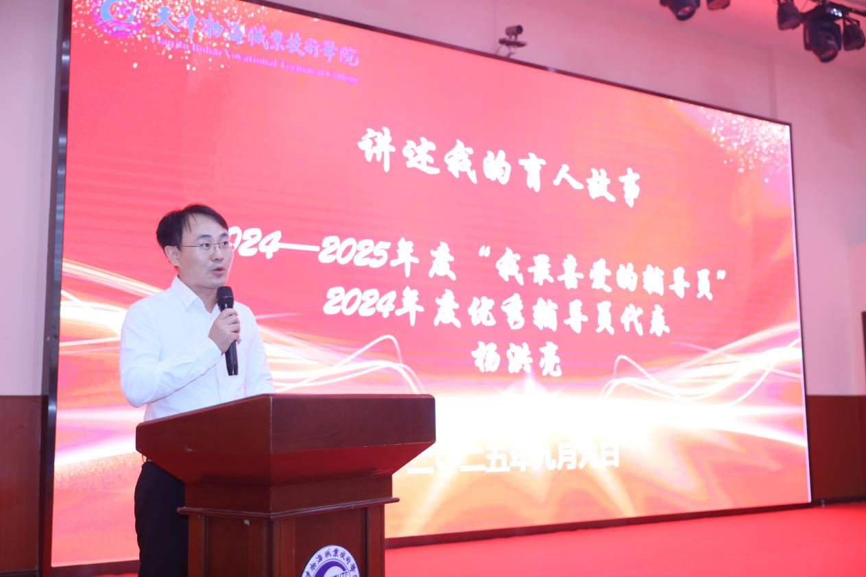 在“講述我的育人故事”環節,從教三十年教師代表、“學生最喜愛的任課教師”代表、“優秀輔導員”代表先后登臺,結合自身教育教學經歷,分享與學生共同成長的點滴故事,暢談教書育人的感悟與收獲。他們用樸實的語言、真摯的情感,詮釋了“學高為師,身正為范”的深刻內涵,展現了渤海職院教師的責任與擔當。