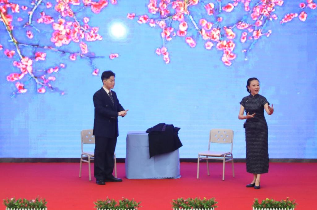 遠在新疆支教的教師代表通過視頻連線,分享了在祖國邊疆開展教育教學、服務當地發展的感人經歷,生動展現了學院教師服務國家戰略、甘于奉獻的精神風貌,引發在場師生的強烈共鳴,現場掌聲不斷。