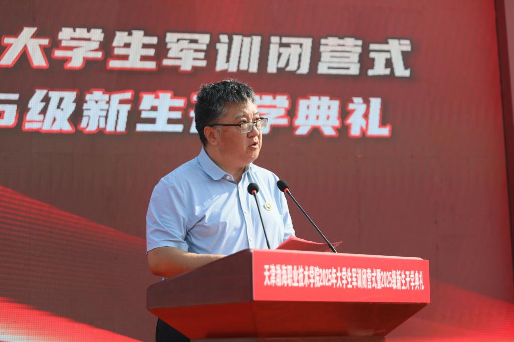 迷彩淬煉青春志,奮楫揚(yáng)帆啟新程。9月28日,學(xué)院2025級(jí)大學(xué)生軍訓(xùn)閉營式暨新生開學(xué)典禮在體育場隆重舉行。紅橋區(qū)人民武裝部副部長張航川、天津渤海化工集團(tuán)有限責(zé)任公司人力資源部部長劉洋應(yīng)邀出席;學(xué)院黨委書記魏炳舉,黨委副書記、院長花玉香,紀(jì)委書記王雷,副院長吳國旭出席。黨委副書記、工會(huì)主席、副院長王蕾主持活動(dòng)。全體中層干部、輔導(dǎo)員、軍訓(xùn)教官及2025級(jí)新生共計(jì)4400余人參加。