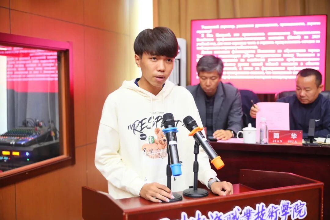 泰國學生尹靖宇、塔吉克斯坦學生瑪撒作為留學生代表發言。尹靖宇對學院提供的學習機會表示感謝,承諾將專注學業、精進技能、提升漢語,以優異表現回報各方信任。瑪撒分享了初到中國的喜悅,講述了對中國文化的濃厚興趣,并表示期待與泰國同學親如一家、互幫互學,共同進步,在渤海職院攜手度過充實而難忘的求學時光。