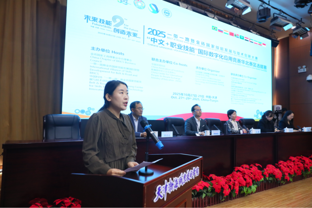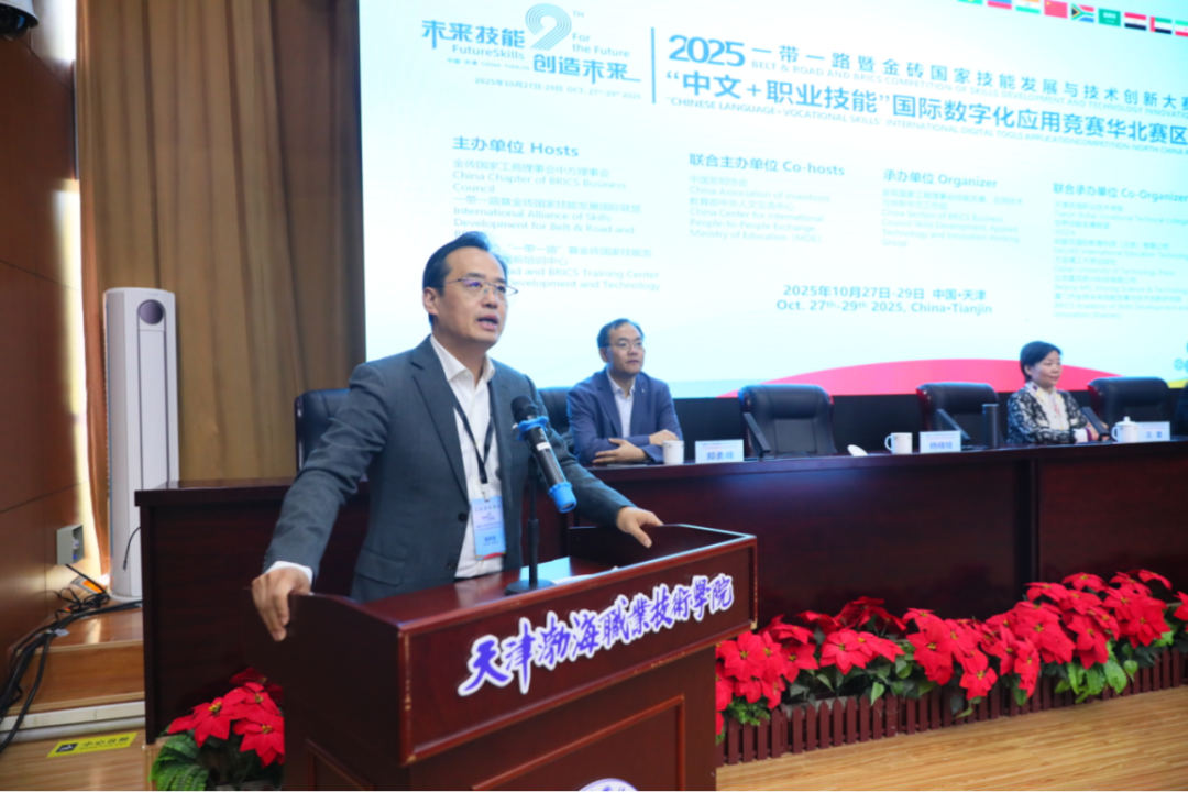 10月27日至29日,2025一帶一路暨金磚國家技能發展與技術創新大賽之“中文+職業技能”國際數字化應用競賽華北賽區選拔賽在學院舉行。學院黨委書記魏炳舉出席閉幕式并致辭,黨委副書記、工會主席、副院長王蕾,南昌職業大學副校長楊曉培,世界技能發展聯盟中國區首席代表李華杰出席開閉幕式。賽事聚焦數字化應用與中文能力融合,吸引了150余名選手參賽,展現了學院在職業教育與國際化融合方面的組織實力。