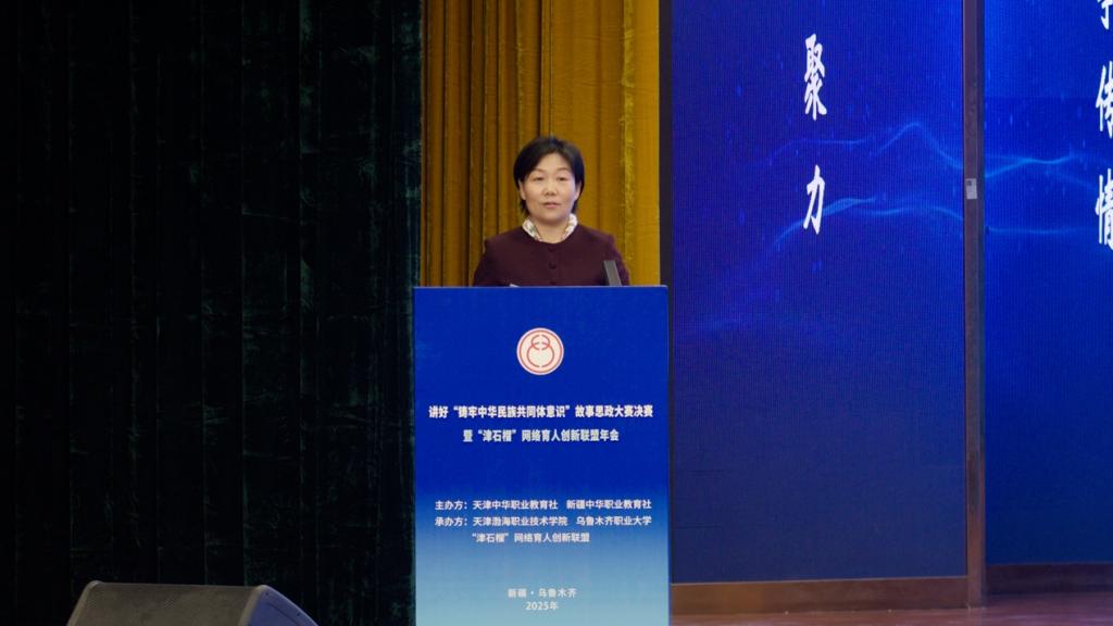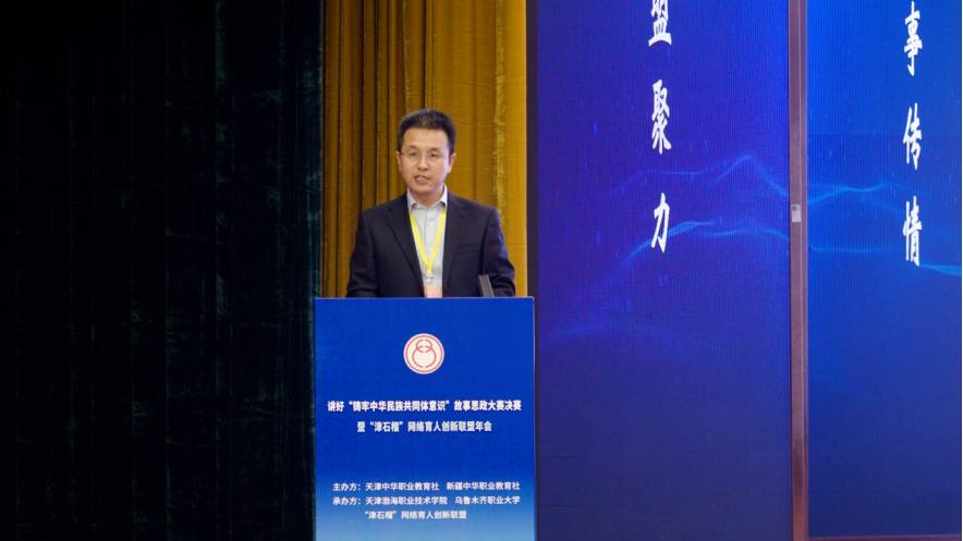 10月30日至11月2日,由天津中華職業教育社、新疆中華職業教育社聯合主辦,依托“津石榴”網絡育人創新聯盟,天津渤海職業技術學院、新疆烏魯木齊職業大學共同承辦的講好“鑄牢中華民族共同體意識”故事思政大賽決賽暨“津石榴”網絡育人創新聯盟年會在新疆烏魯木齊職業大學成功舉行。民建新疆區委會主委、新疆中華職業教育社主任馬華東,天津中華職業教育社常務副主任關章軍,天津市教育委員會學生思想教育與管理處副處長滿榮,新疆維吾爾自治區教育廳職成處一級調研員劉子坤,天津市民族和宗教事務委員會民族二處處長穆懷寅,天津中華職業教育社秘書長魏新兵,新疆中華職業教育社副秘書長趙明,烏魯木齊市教育局副局長鄭陽,天津渤海職業技術學院黨委書記魏炳舉,天津交通職業學院黨委書記蘇敬,天津濱海汽車工程職業學院校長張澤玲,南開大學馬克思主義學院黨委副書記肖光文,和田職業技術學院黨委委員、副院長王新國,新疆生產建設兵團第十一師職業技術學校副校長于洋,烏魯木齊市職業教育中心副主任程應科出席本次大會。由烏魯木齊職業大學副校長孫曉偉及天津渤海職業技術學院黨委副書記、工會主席、副院長王蕾分階段主持會議。
