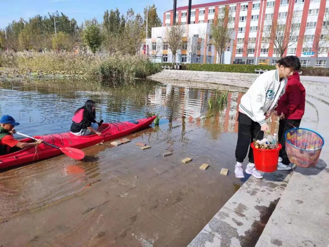 此次活動由體衛藝部組織開展,后勤處、團委、青年志愿者、學生代表協助,共同組成清理小隊。清理小隊乘坐皮劃艇,對湖面的飲料瓶、垃圾袋、白色泡沫等垃圾進行打撈清理。他們打撈垃圾的身影,與周邊樹木、綠植、鳥兒形成一道靚麗的風景線,遠觀如詩如畫。