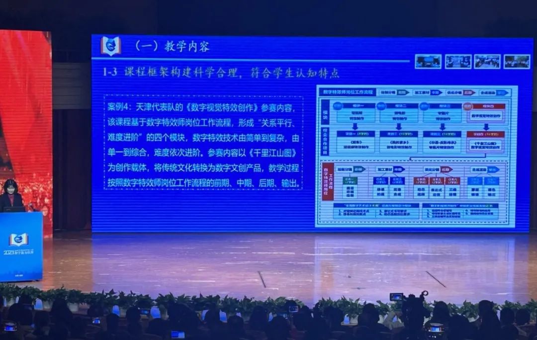 11月24日,代表全國職業院校教學能力最高水平的權威賽事——2023年全國職業院校技能大賽教學能力比賽在江西南昌舉行。由高玉昱、張洪民、武安達、焦曉龍組成的學院教學團隊,憑借作品《數字視覺特效創作》榮獲二等獎,獲評最佳教學實施報告受到大會表揚。