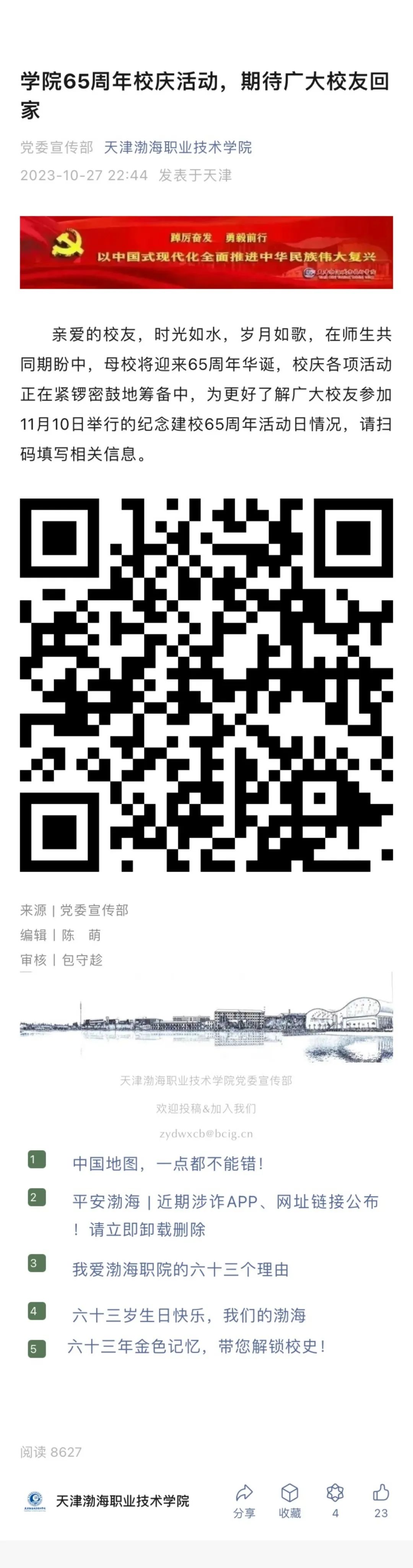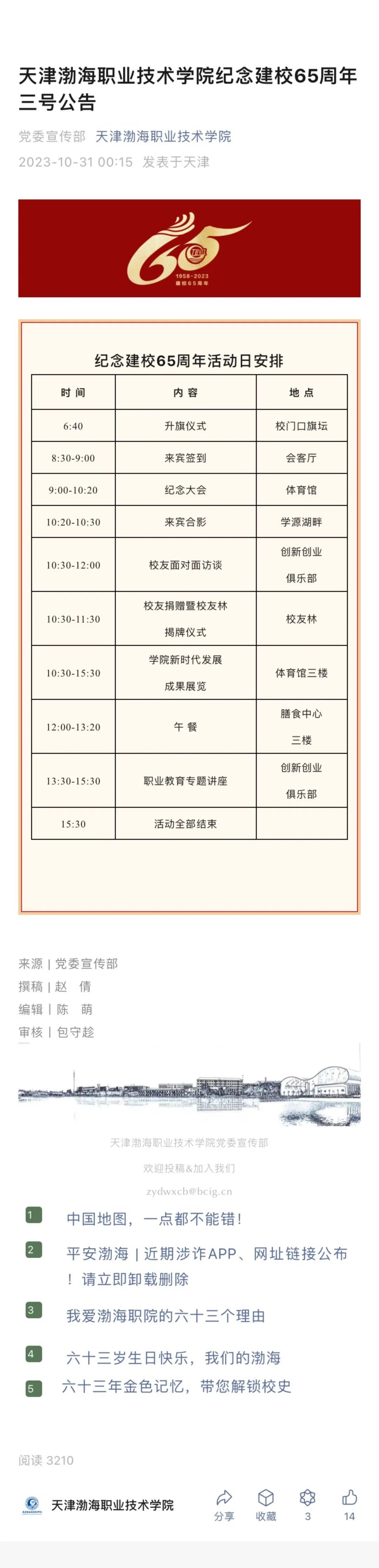 天津渤海職業技術學院紀念建校65周年 | 渤海學子送祝福