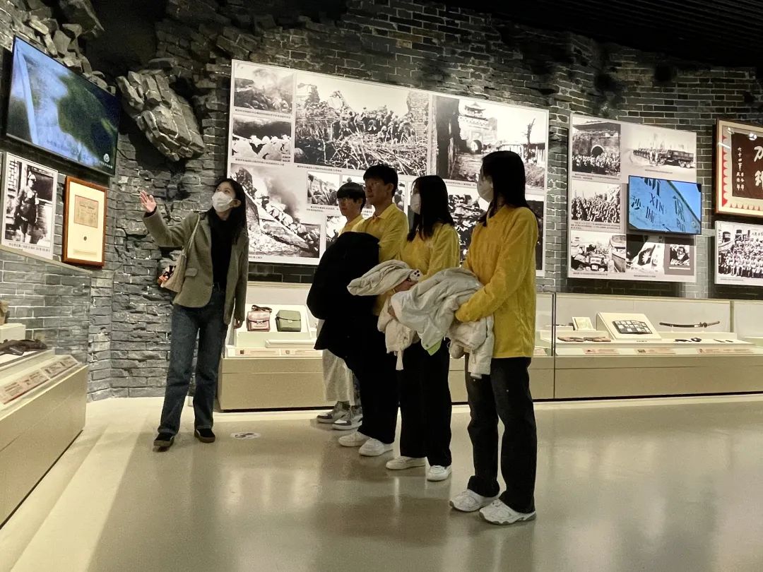 社稷危機,人心大義,古跡安存告遠猷。在參觀的過程中,學生們深受感染,自發做起講解員,從紀念館整體布局著手,充分講解了六大展廳內的史實、文物,講述英雄故事,重溫英勇戰績。團隊成員沉浸在史料講解、媒體沙盤、場景復原、造型藝術、歷史文物等多種形式的展覽中,身臨其境地感受到熱血拼搏的戰場氛圍,大家仿佛置身于那段波瀾壯闊的歷史,深刻體會到以愛國主義為核心,舍己為人、紀律嚴明的解放精神。
