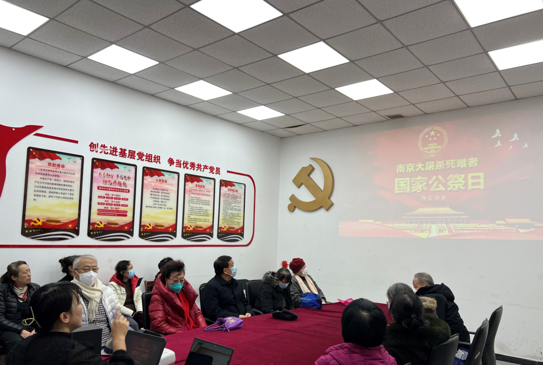 在學院開展活動的同時,思政教學部教師胡文慧在天津市河東區魯山街道金旭園社區為廣大黨員群眾講“國家公祭日”專題黨課,并發出“心系國旗、心懷祖國,用實際行動捍衛祖國尊嚴”的倡議,倡議大家關注歷史,反思歷史,將赤誠愛國心落實到自己的日常工作、生活中。