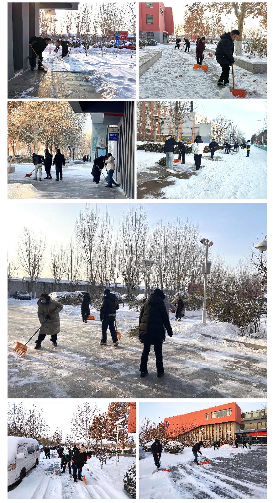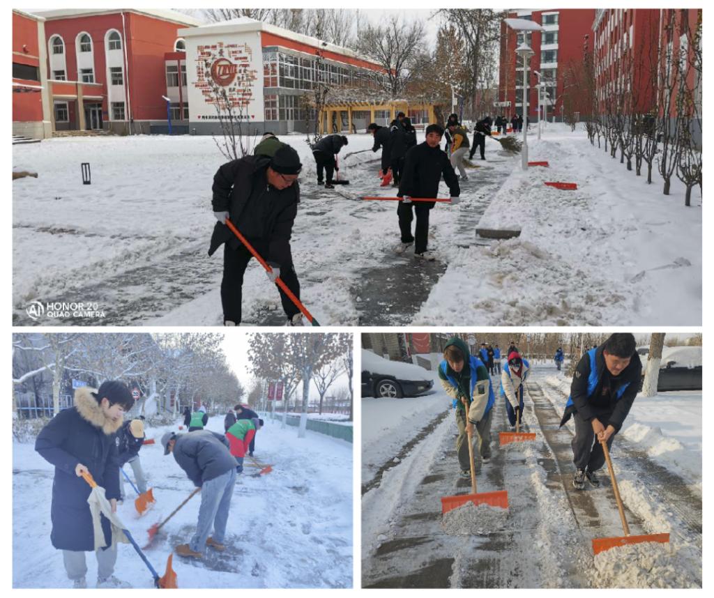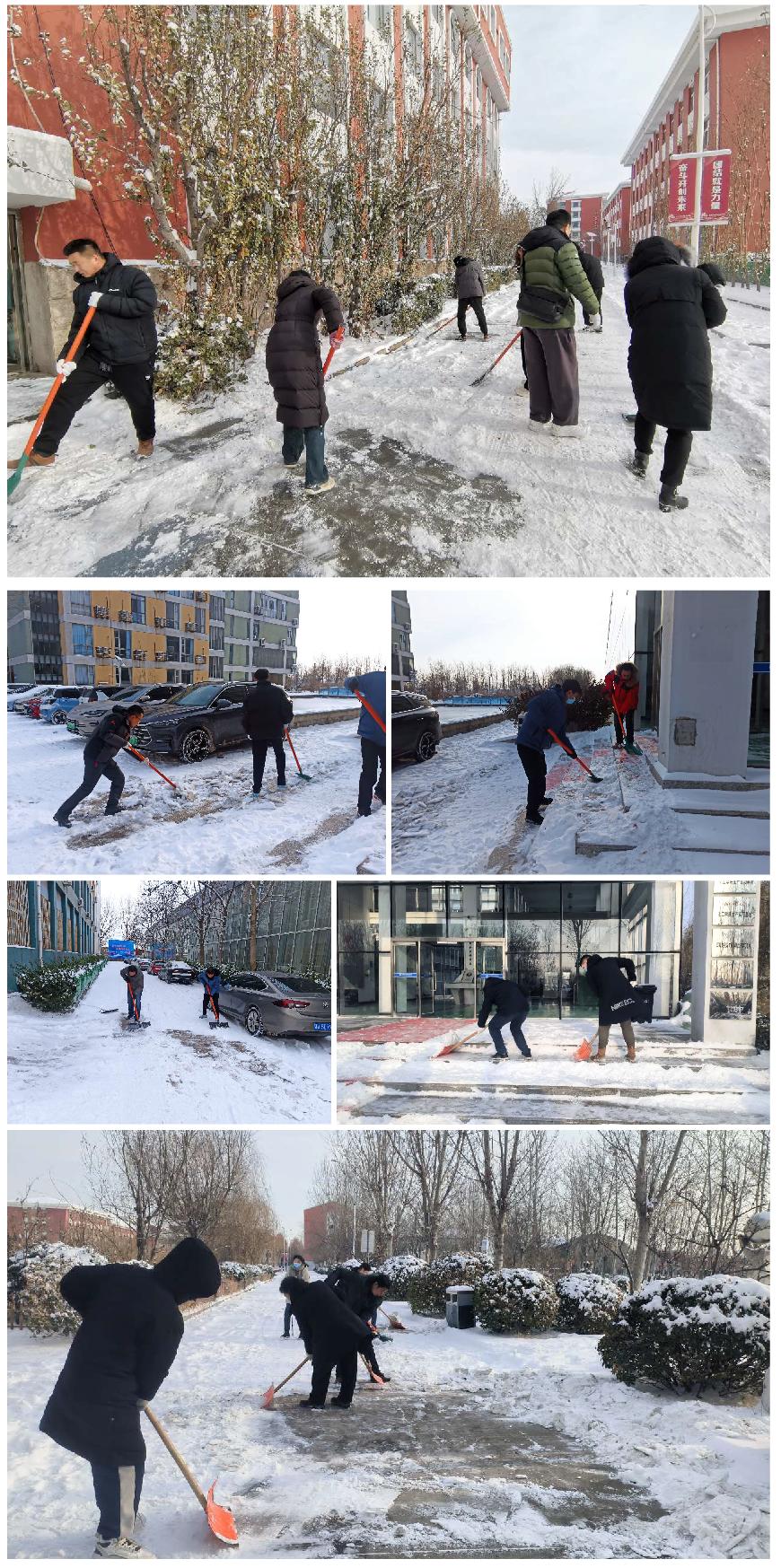 12月15日,天津市突降暴雪,銀裝素裹的美景給師生們帶來(lái)欣喜的同時(shí),也造成了校園內(nèi)道路積雪和結(jié)冰的情況。為保障廣大師生和校內(nèi)過(guò)往車輛的安全,廣大師生迅速行動(dòng),積極投入到校園掃雪除冰工作中。利用一個(gè)上午的時(shí)間,對(duì)教學(xué)樓、辦公樓、實(shí)訓(xùn)基地周邊主要道路的冰雪進(jìn)行了清理,展現(xiàn)了師生們的責(zé)任與擔(dān)當(dāng)。