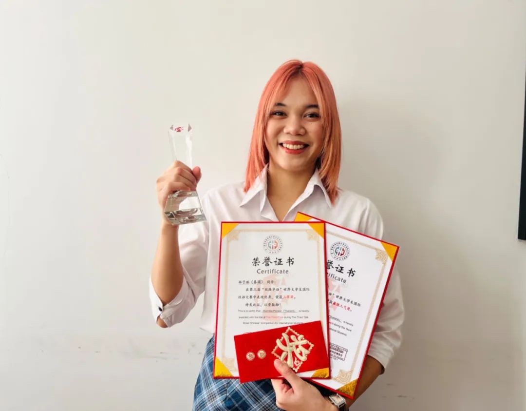 近日,從第三屆“絲路華語”世界大學生國際漢語大賽頒獎典禮上傳來喜訊,經濟管理學院大數據與會計專業22級泰國留學生Wannika Panasri林子琪喜獲三等獎和最佳人氣獎。