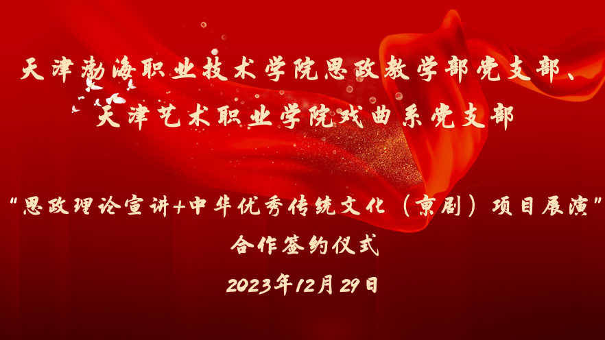為進一步強化京劇項目傳統文化育人作用,學院思政教學部黨支部與天津藝術職業學院戲曲系黨支部經過前期深度溝通,于12月29日在學院第四會議室舉行了“思政理論宣講+中華優秀傳統文化(京劇)項目展演”合作簽約儀式。雙方一致認為,打造以思政加美育為特色的育人體系,對全面提升思想政治工作和美育工作質量,構建“三全”育人體系,深化課程思政改革,著力打造思政理論宣講和京劇曲目展演相結合的典型案例具有重要意義。