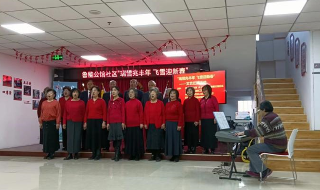 活動在“新風尚藝術團”極富感染力的合唱《永遠是朋友》、《紅旗頌》中拉開帷幕。舞蹈《畫你》、《樹梢上的月亮》、《九兒》、《吉祥歡歌》展現了魯能社區居民樂觀積極的時代風貌和社區文化的豐富多彩。到場的大學生們為老年藝術團演員們認真、熱烈的表演所折服,感受到他們身上對生活的熱愛和多姿多彩,敦促著大學生也應不負韶華、不負人民,在奮斗新時代事業中踐行個人價值。