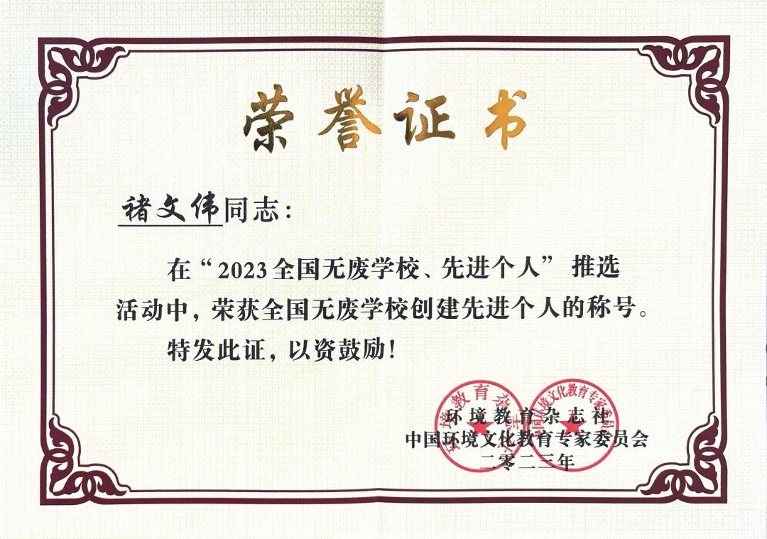 1月12日,由中國(guó)環(huán)境文化教育專家委員會(huì)、《環(huán)境教育雜志社》共同舉辦,以“環(huán)境教育理論與實(shí)踐”為主題的第八屆全國(guó)環(huán)境教育交流會(huì)在天津召開。學(xué)院作為“無廢校園”創(chuàng)建工作優(yōu)秀代表受邀參會(huì),被授予“2023全國(guó)無廢學(xué)校”榮譽(yù)稱號(hào),環(huán)境與化工學(xué)院黨支部副書記褚文瑋被授予“全國(guó)無廢學(xué)校創(chuàng)建先進(jìn)個(gè)人”榮譽(yù)稱號(hào)。