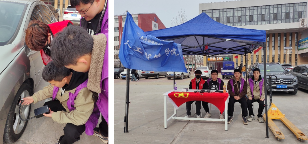 3月3日,人工智能學院黨支部充分發(fā)揮新能源汽車專業(yè)優(yōu)勢,開展了獨具特色的志愿服務活動——車輛胎壓和電瓶檢測。