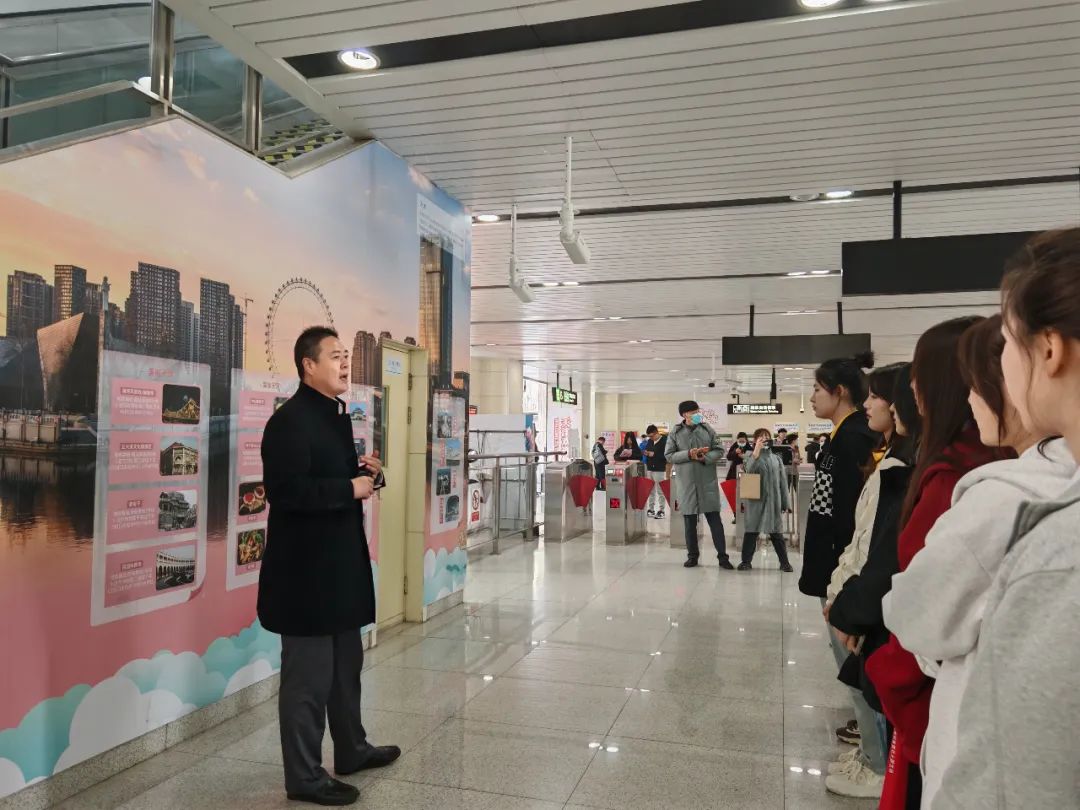 本次活動走出校園,走進天津三號線軌道交通運營有限公司南站站區,邀請站區中心站長劉頓、值班站長趙志豪及工作人員為師生作了詳細的講解,同時在值班員的帶領下參觀了車控室,并演示了滅火器等消防設備的使用。活動中,師生代表與站區工作人員進行互動,現場氣氛活躍,同學們紛紛在南站打卡拍照,表達對祖國、對天津的熱愛,站區工作人員也表達了對各民族同學的歡迎,以及對天津渤海職業技術學院的祝福!