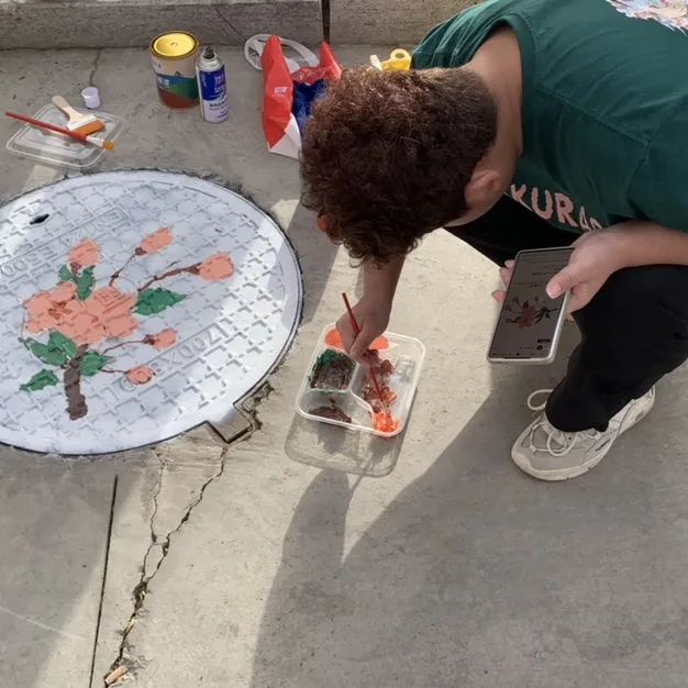 井蓋上生出了花
