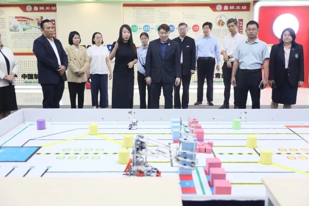 會前,與會人員一同參觀體驗了工程實踐創新項目體驗中心、化工機械加工維修中心、人工智能實訓中心、化工安全車間、化工安全技術實訓中心。西里蓬?昂卡薩庫里亞特表示,兩名泰國魯班工坊項目學生的講解令人印象深刻,這正是中泰職業教育合作成果的生動體現,希望未來中泰教育合作越來越緊密。